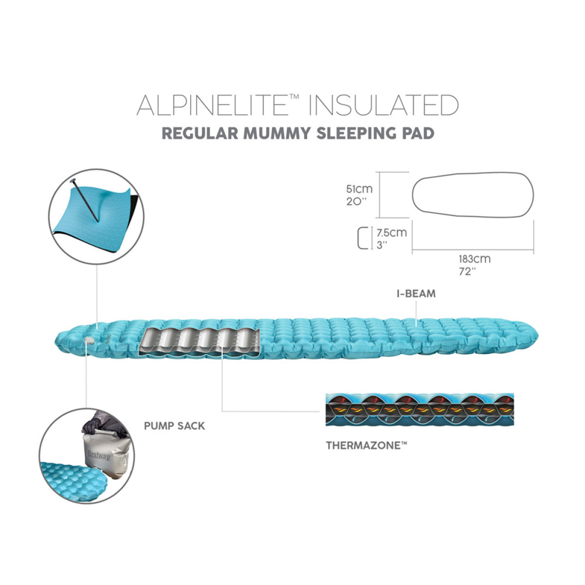 AlpineLite Isolatsiooniga Regulaarne Mummy Magamismatt 183x51x7,5 cm