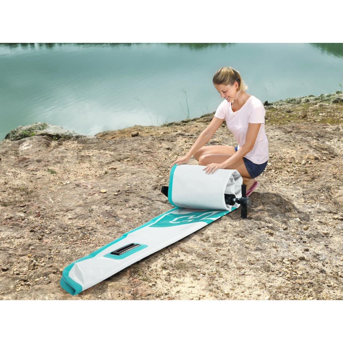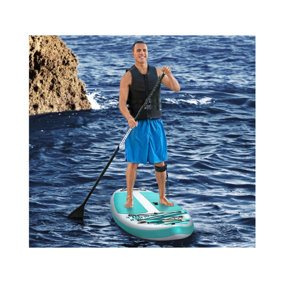 See on ideaalne viis veeta aktiivselt vaba aega veekogude ääres. Antud laud on valmistatud kvaliteetselt libisemiskindla pinnaga, mis on hästi kujundatud ja varustatud elastse surfipaelaga, sobides kasutamiseks mitmetes veekogudes. Laud on väga lihtne kasutada ja seda saab hõlpsasti käsitsi pumbaga täis pumbata. Elastsed nöörid on kasulikud näiteks lestade, maski või lisapagasi transpordil. Tänu suurele ujuvusele kannab see ilma probleemideta inimest maksimaalse kehakaaluga kuni 110 kg (koos pagasiga). Komplekt sisaldab ka tugev aer, käsipump, pael, seljakott, 2 eemaldatavat uimast ja parandustarvikud. See on hädavajalik element iga veematkade armastaja suvepagasis. Kui eelistad aktiivset puhkust rannas peesitamisele, on see toode just sulle! Täispuhutav laud sobib ideaalselt surfamiseks ja ka joogaks. Pärast ujumise lõpetamist saab laua hõlpsalt õhust tühjendada ja spetsiaalsesse seljakotti panna, mis kuulub komplekti.