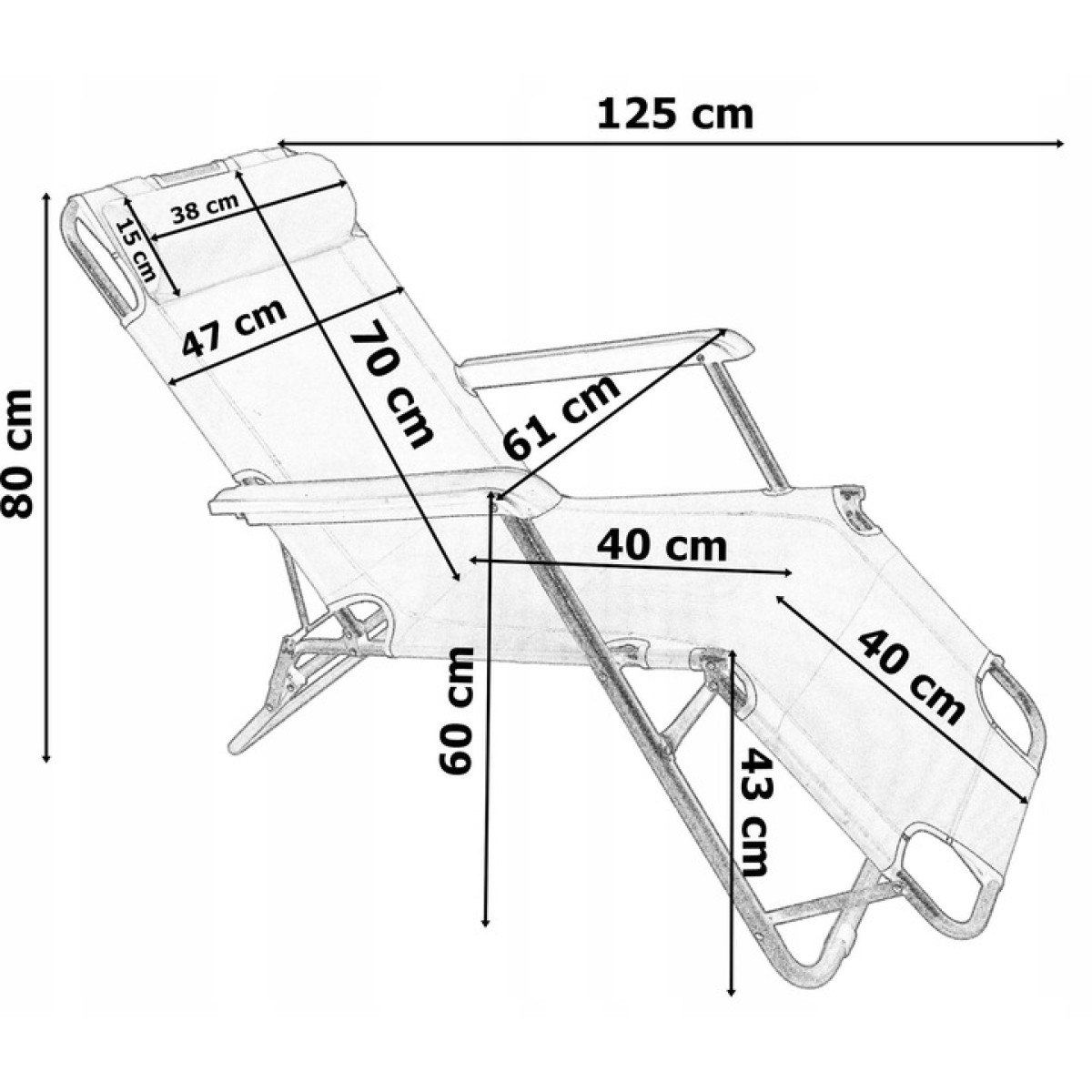 - Kokkuvolditud tooli mõõtmed: kõrgus – 88 cm, laius – 60 cm.