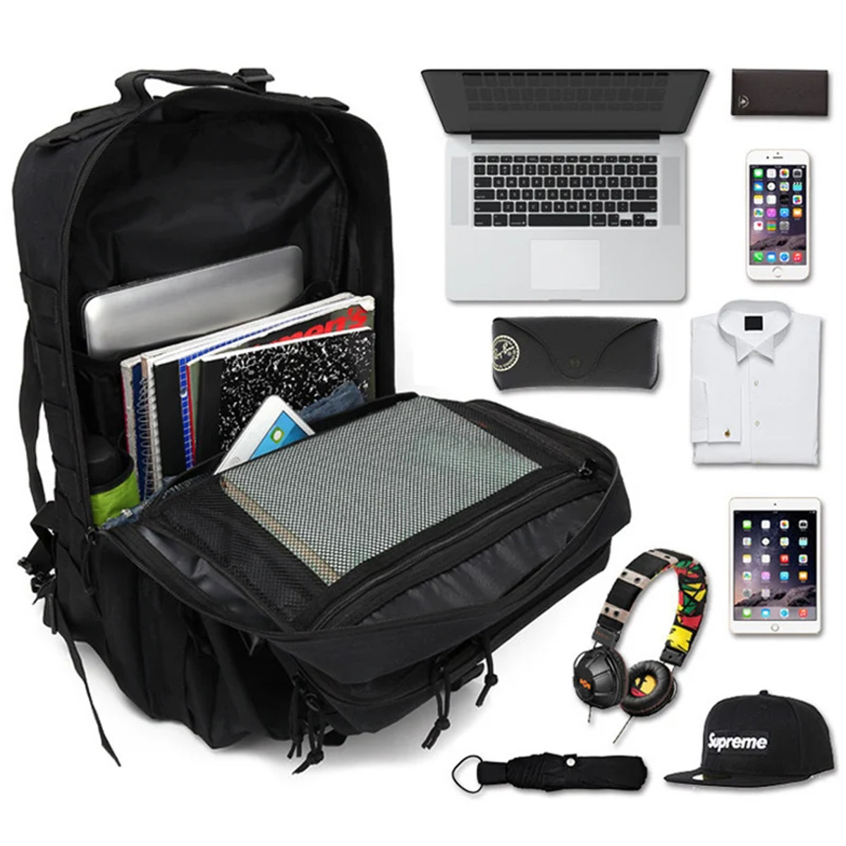 Funktsionaalne ja usaldusväärne, varustatud vaheseinte ja taskutega, suletav tõmblukkudega, ideaalne kott universaalseks kasutamiseks: linn, ellujäämine, militaarkaubad ja turism.