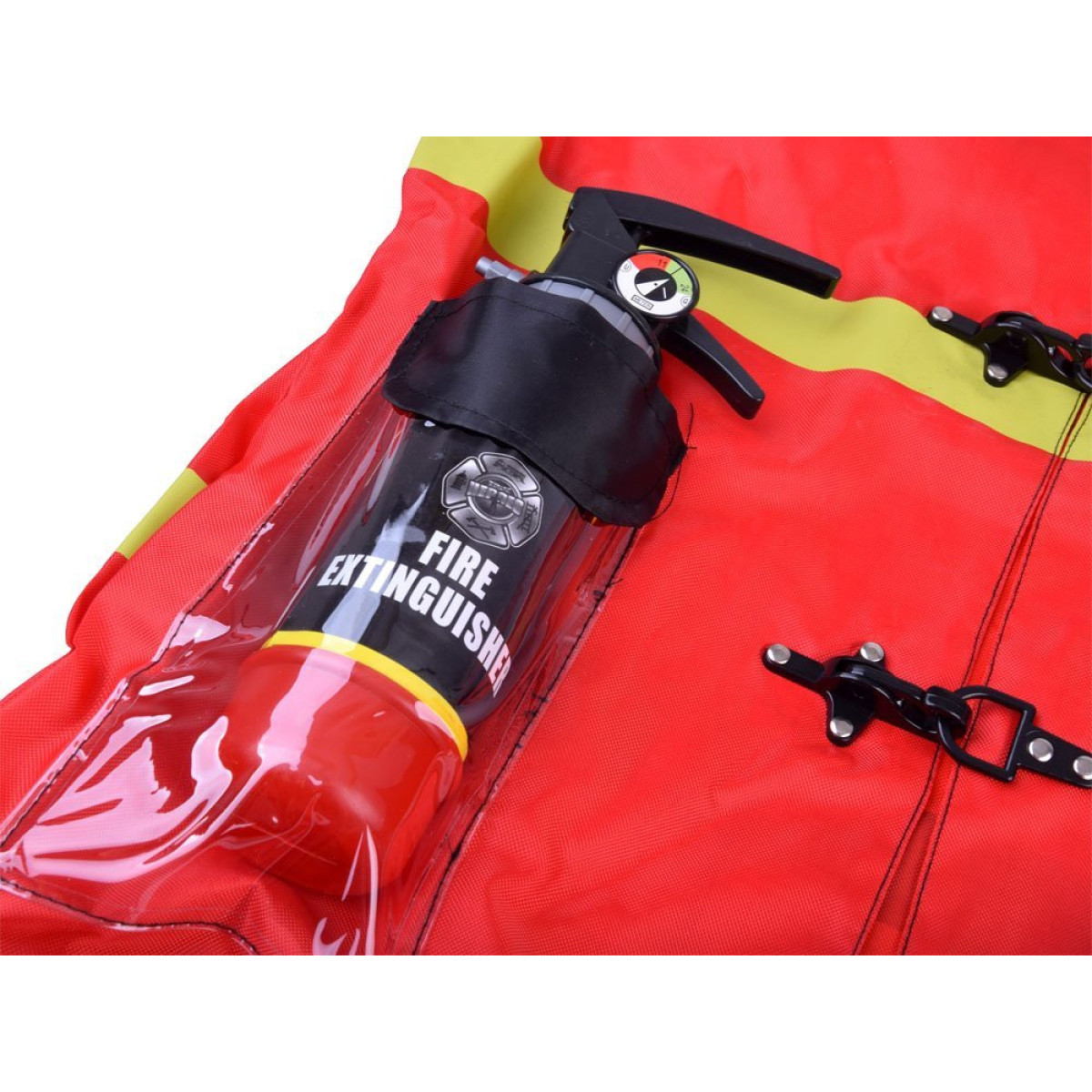 Kostüüm on valmistatud kvaliteetselt ja sisaldab kõiki vajalikke vahendeid, mis on meie kangelasele vajalikud. Tulekustutisse saab lisada vett ja kasutada seda pihustina! Sobib ideaalselt mängimiseks, karnevaliks või kostüümipeoks. Pakitud läbipaistvasse kilekotti riidepuuga, sobib suurepäraselt kingituseks.