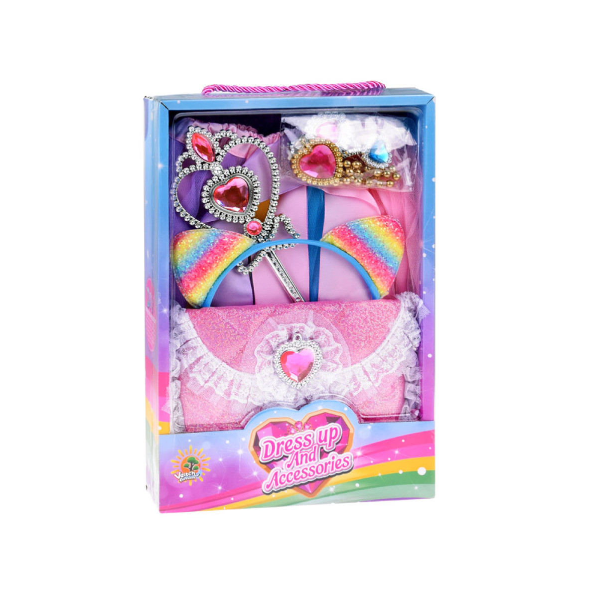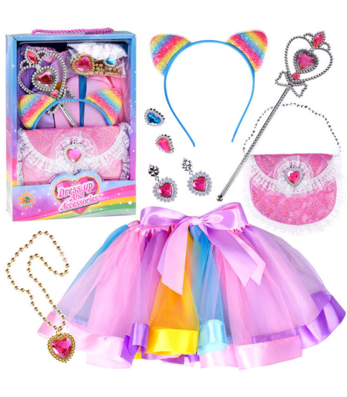 Imeliselt värvikas ehete komplekt volangseelikuga kindlasti rõõmustab iga väikest tüdrukut. Komplekt sisaldab rikkalikult tüllist volangseelikut kummipaelaga, kotti, võlukeppi ja ehete komplekti, mis on suurepärane igal lasteaia ballil, sünnipäeval, etendusel.