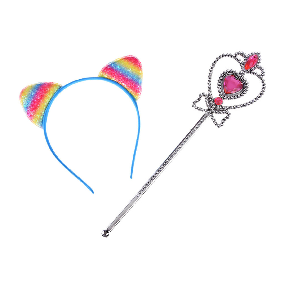 Võluri kostüüm roosa võlukepp vikerkaar seelik peapael ZA4792