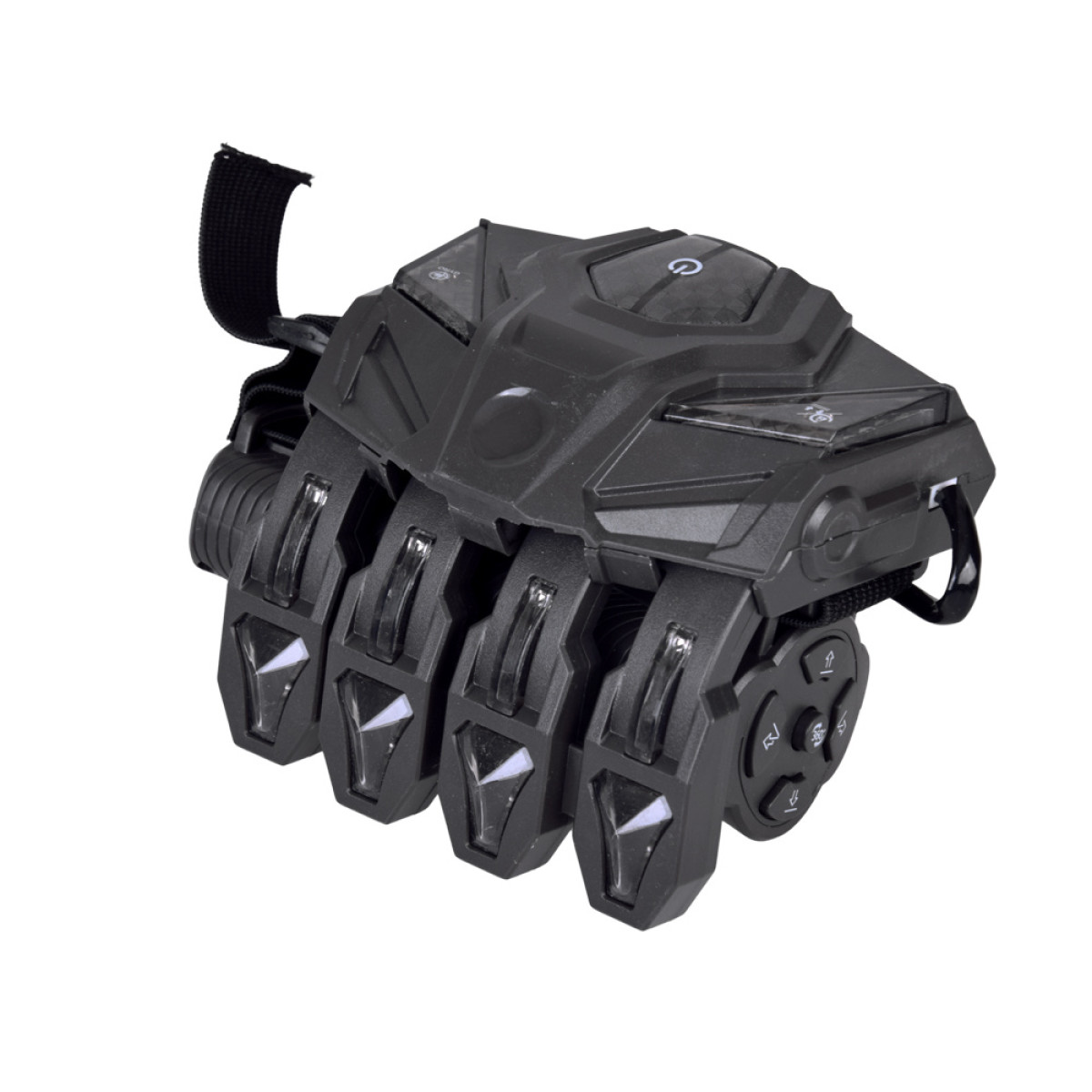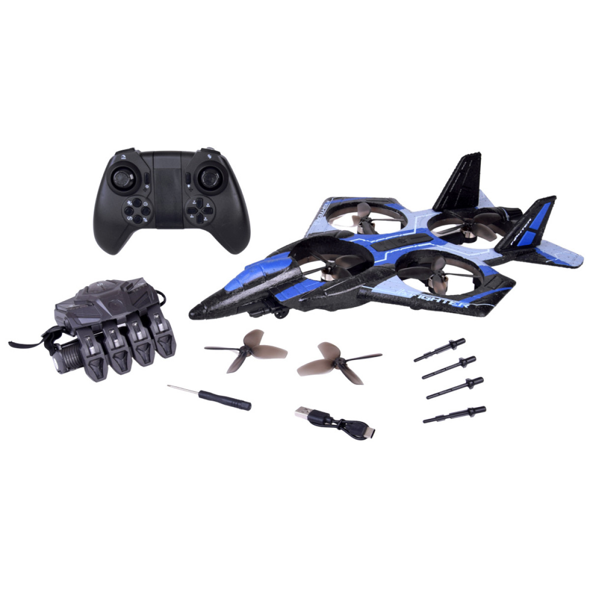 Nüüd saate drooni juhtida kahel viisil: innovaatiline kindaga, mis reageerib käe liigutustele, või klassikalise puldiga, mis pakub veelgi suuremat lennukontrolli.
