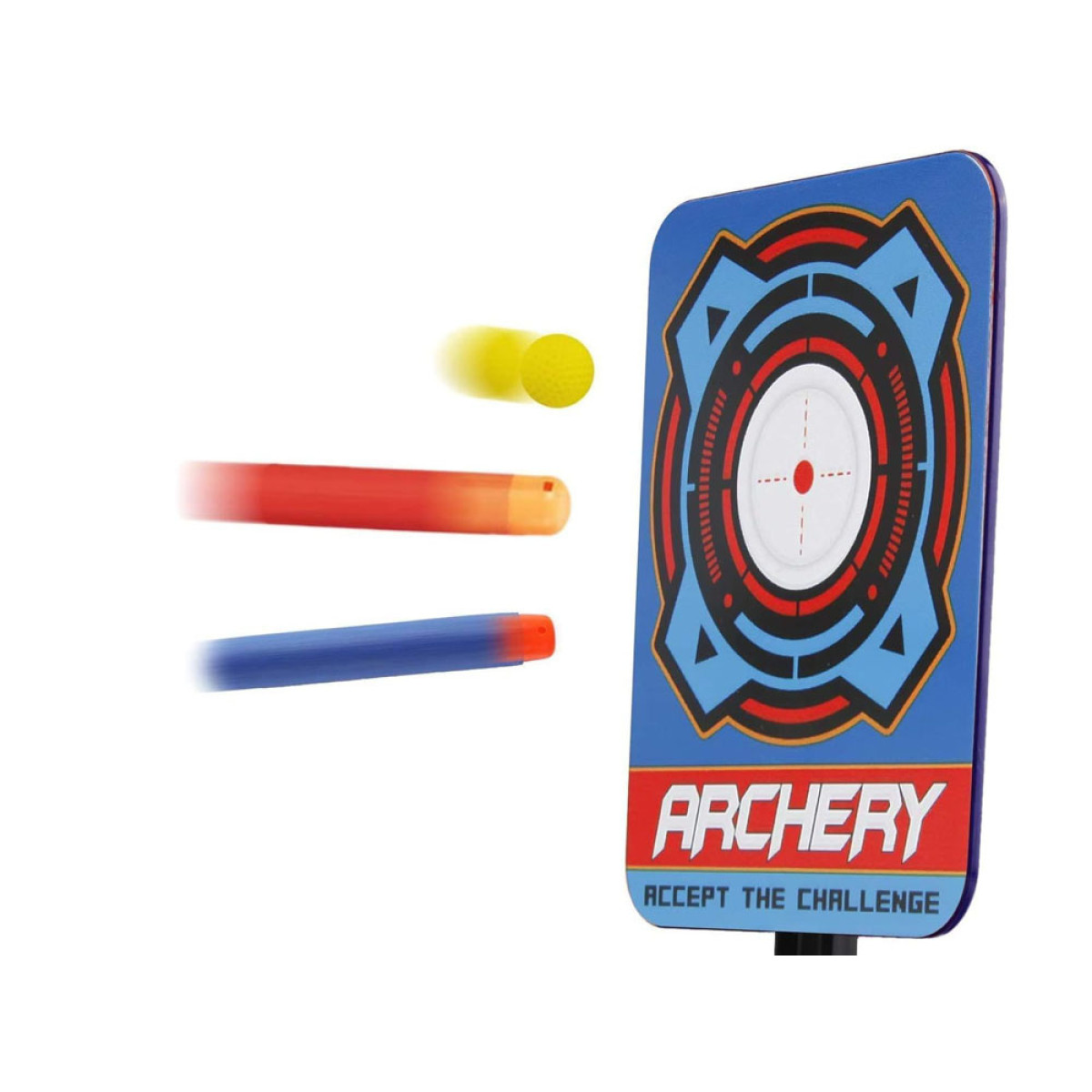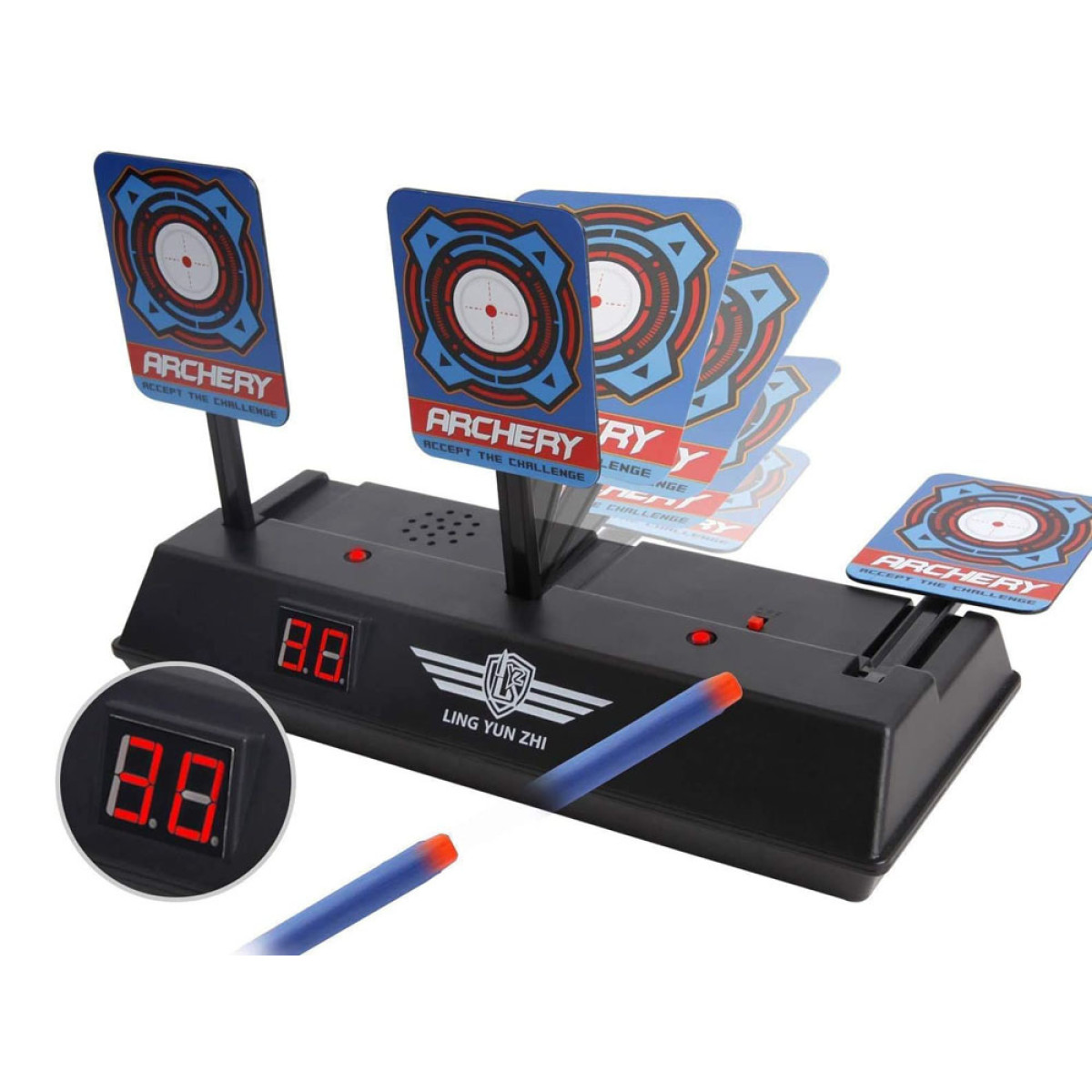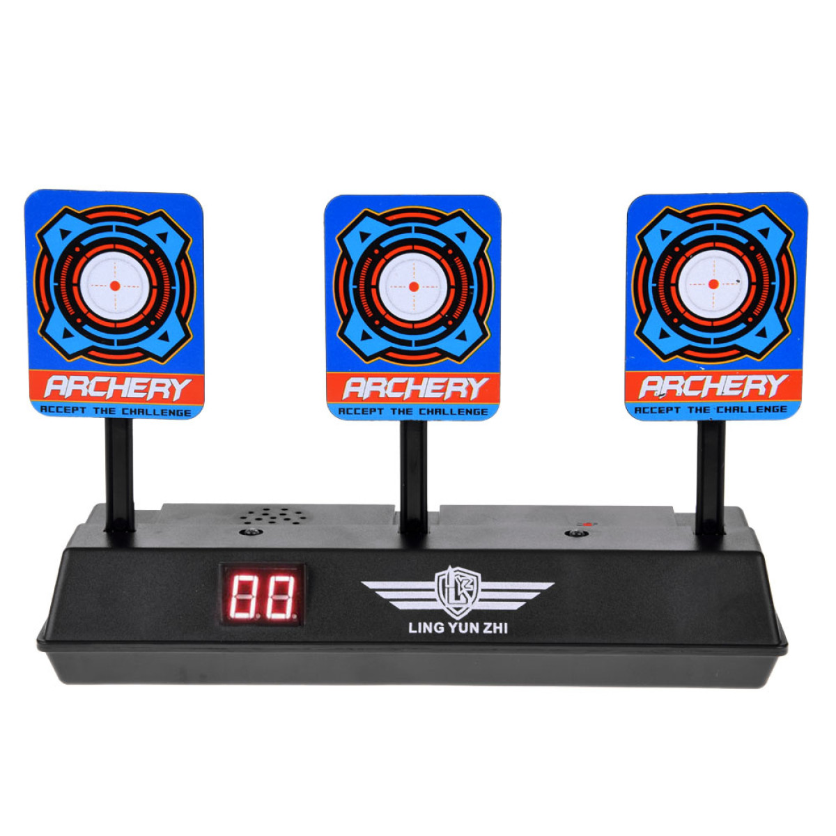 Interaktiivne automaatne 3-punkti märklaua komplekt sobib täpsuslaskmiseks, kasutades näiteks Nerf-tüüpi püstolit või vahtkuulidega relva. Suurepärane idee sihtmärkide pihta laskmise õppimiseks ja mängimiseks. Mänguasi on valmistatud plastikust ning varustatud helide ja valgusefektidega.