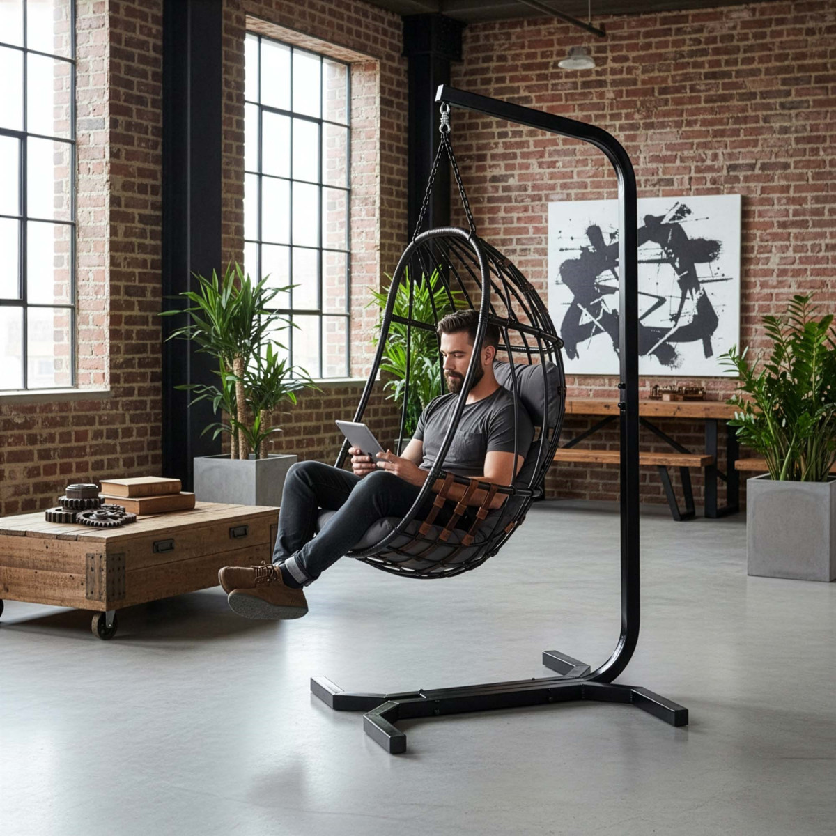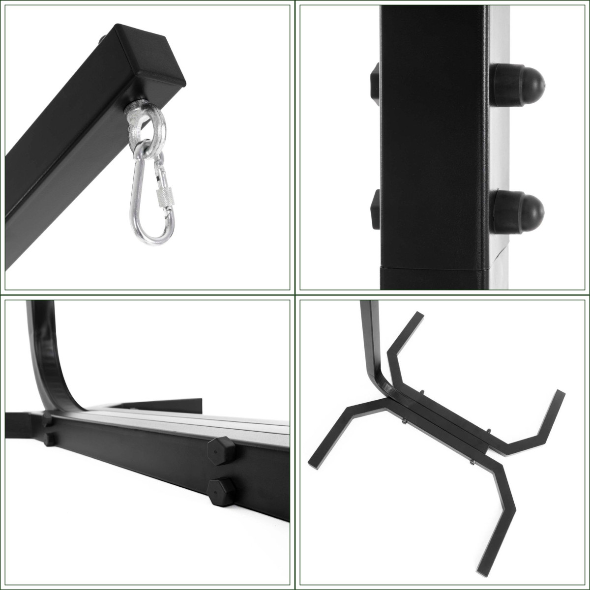 Springos GS0033 kiigeraam on tugev ja praktiline valik aeda, terrassile või puhkealale. Vastupidav pulbervärvitud teraskonstruktsioon tagab stabiilsuse ja pika kasutusea. Must viimistlus sobib hästi erinevatesse õuealadese ning raam on mõeldud iseseisvaks kokkupanekuks.