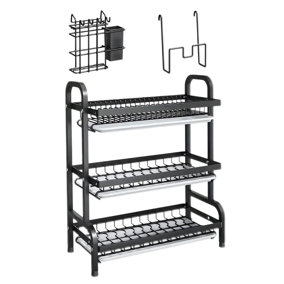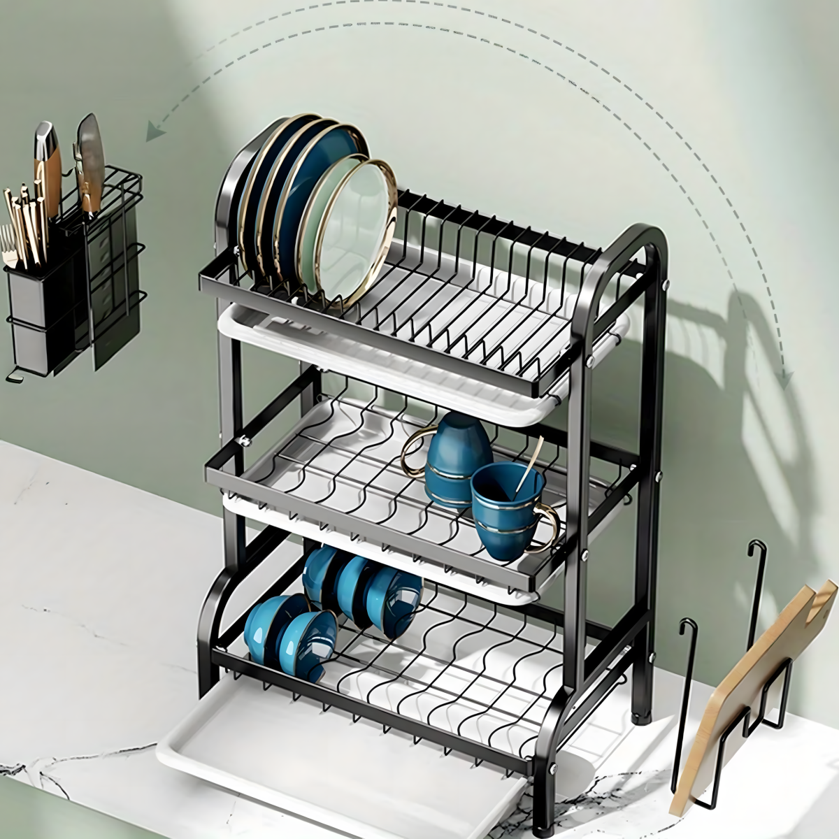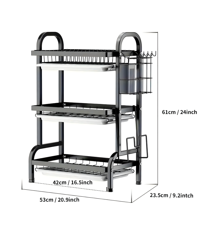 Kolmetasandiline nõudekuivati XXL – must, roostevaba teras