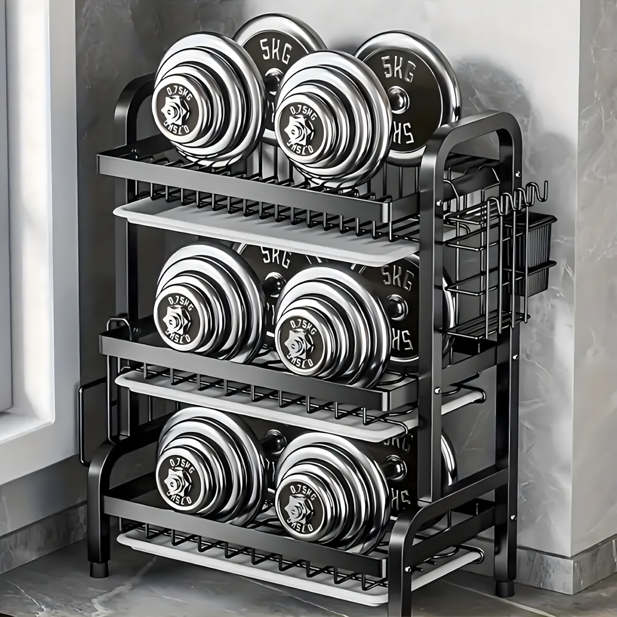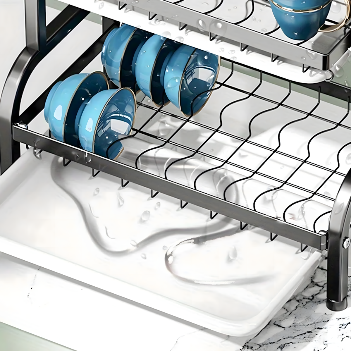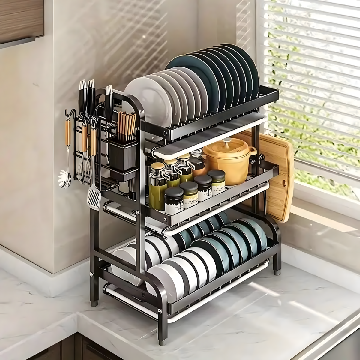 Kolmetasandiline nõudekuivati XXL – must, roostevaba teras