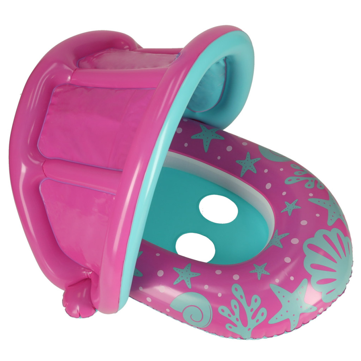 See imikutele mõeldud ujumisrõngas on ideaalne lahendus väikestele lastele, kes alles alustavad ujumise õppimist. Tänu mugavatele jalgade avadele püsib laps kindlalt rõngas ja ei kuku sellest välja. Täispuhutav varikatus kaitseb lapse õrna nahka kahjulike päikesekiirte eest. Lisaks saab varikatuse eemaldada, kui minna basseini. Rõngas on valmistatud vastupidavast PVC-st, mis tagab pikaajalise kasutamise mitmel suvel.