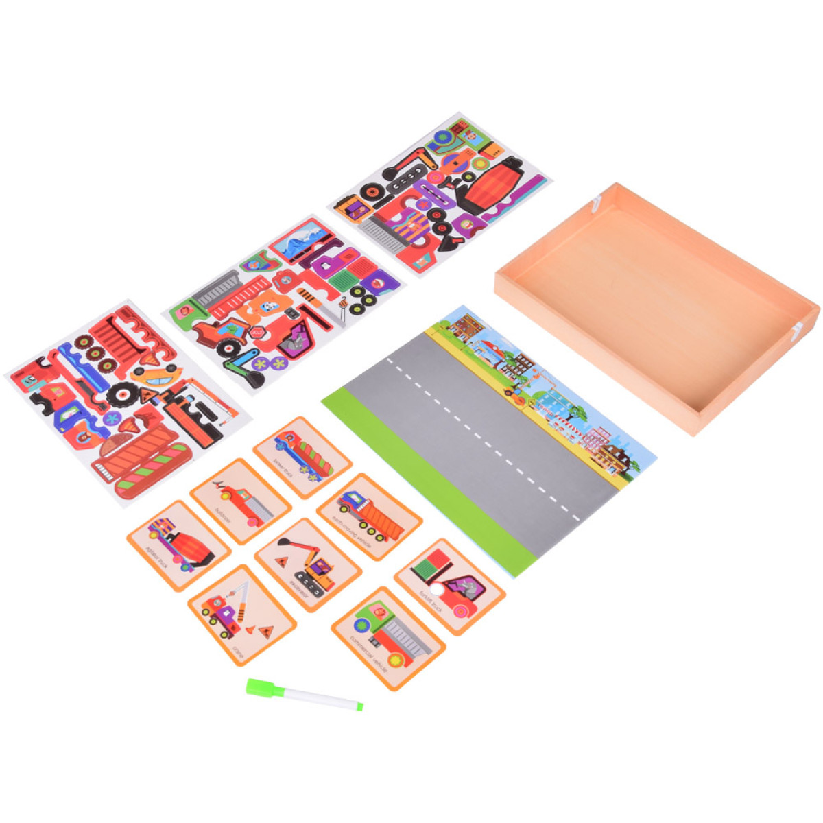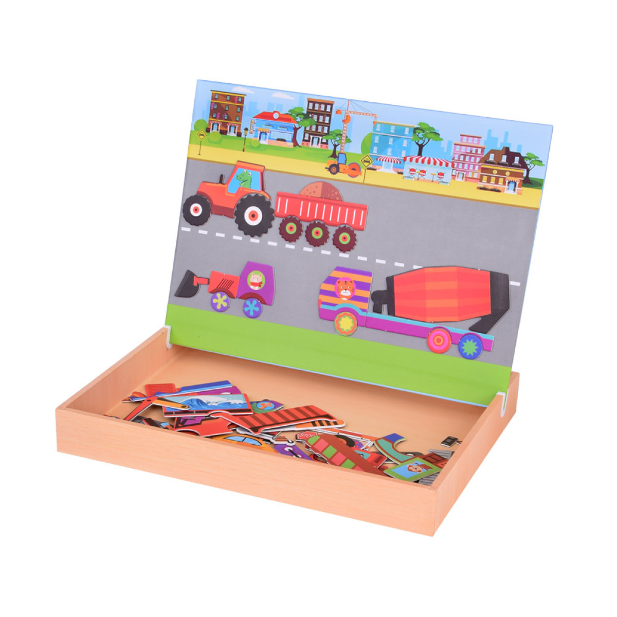 Kahepoolne Magnettahvel - Magnetpussled Ehitusmasinate ja Joonistusmarkeriga