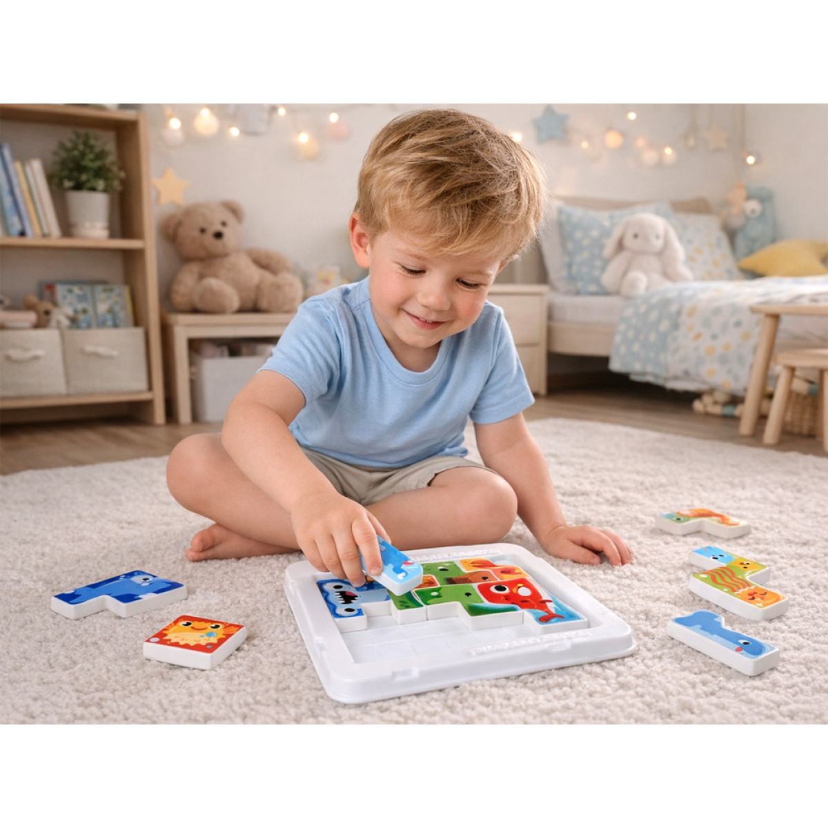 - arendab loogilist mõtlemist – laps õpib kujundeid sobitama ja mõistatusi lahendama,