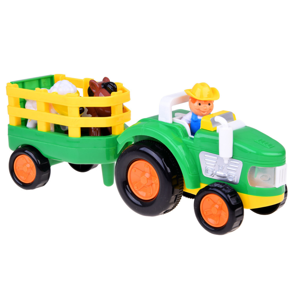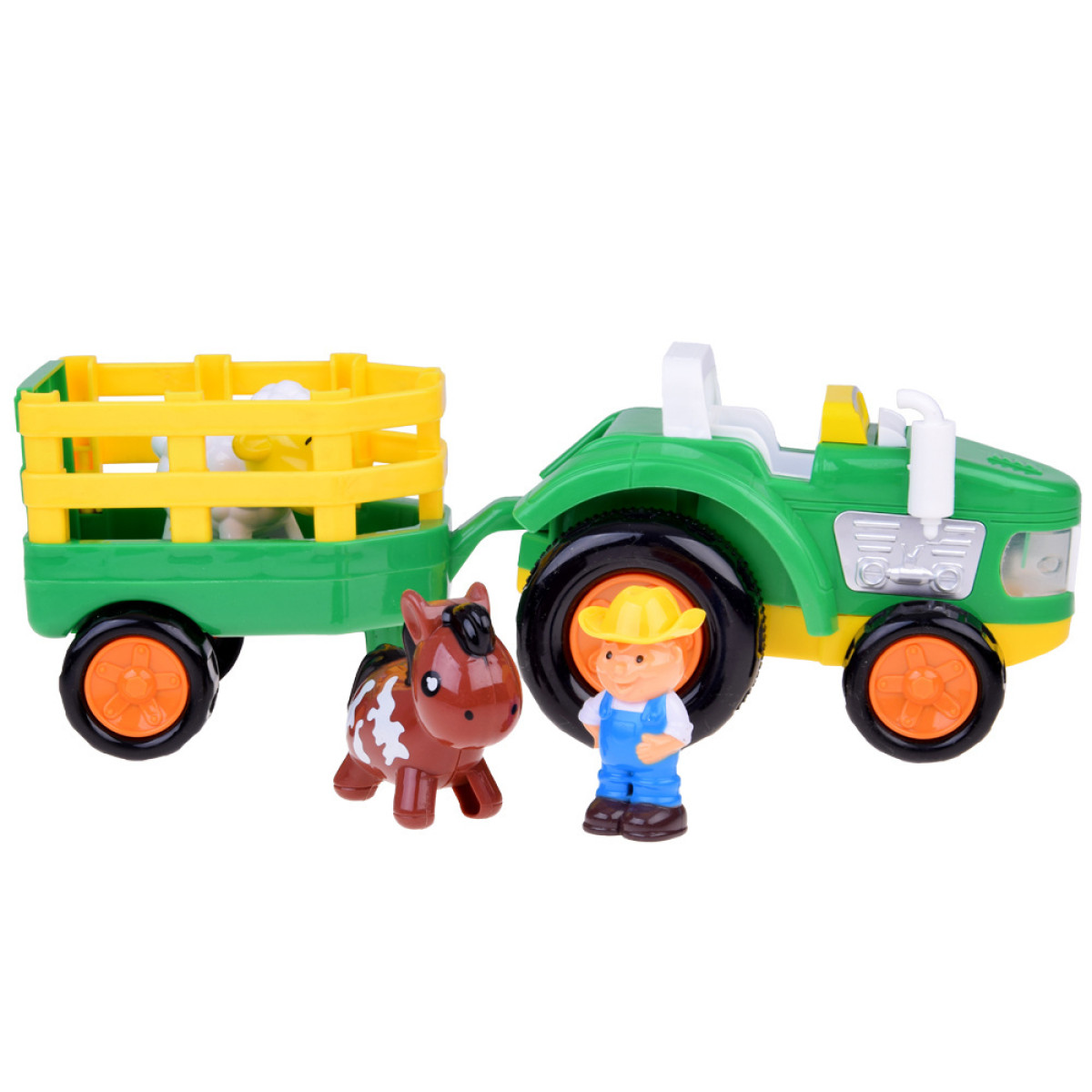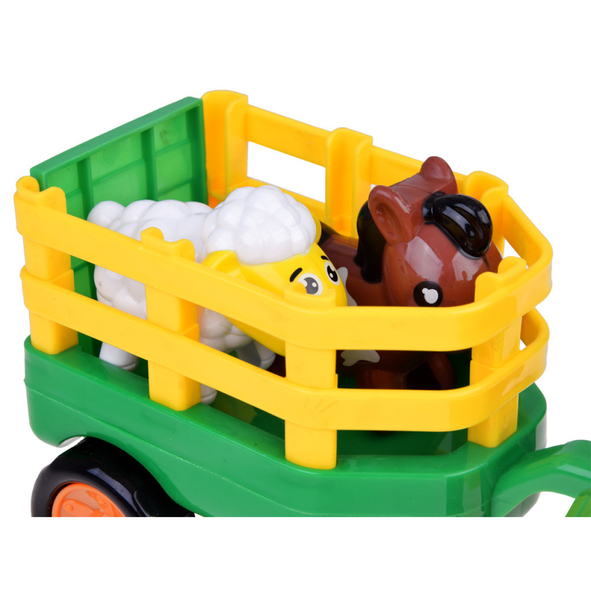 Komplekt traktor haagisega, farmeri ja loomakestega pakub lõbusat farmimängu. Rohelise ja kollase värvi traktor on ideaalne valik väikestele sõidukite ja seikluste armastajatele.