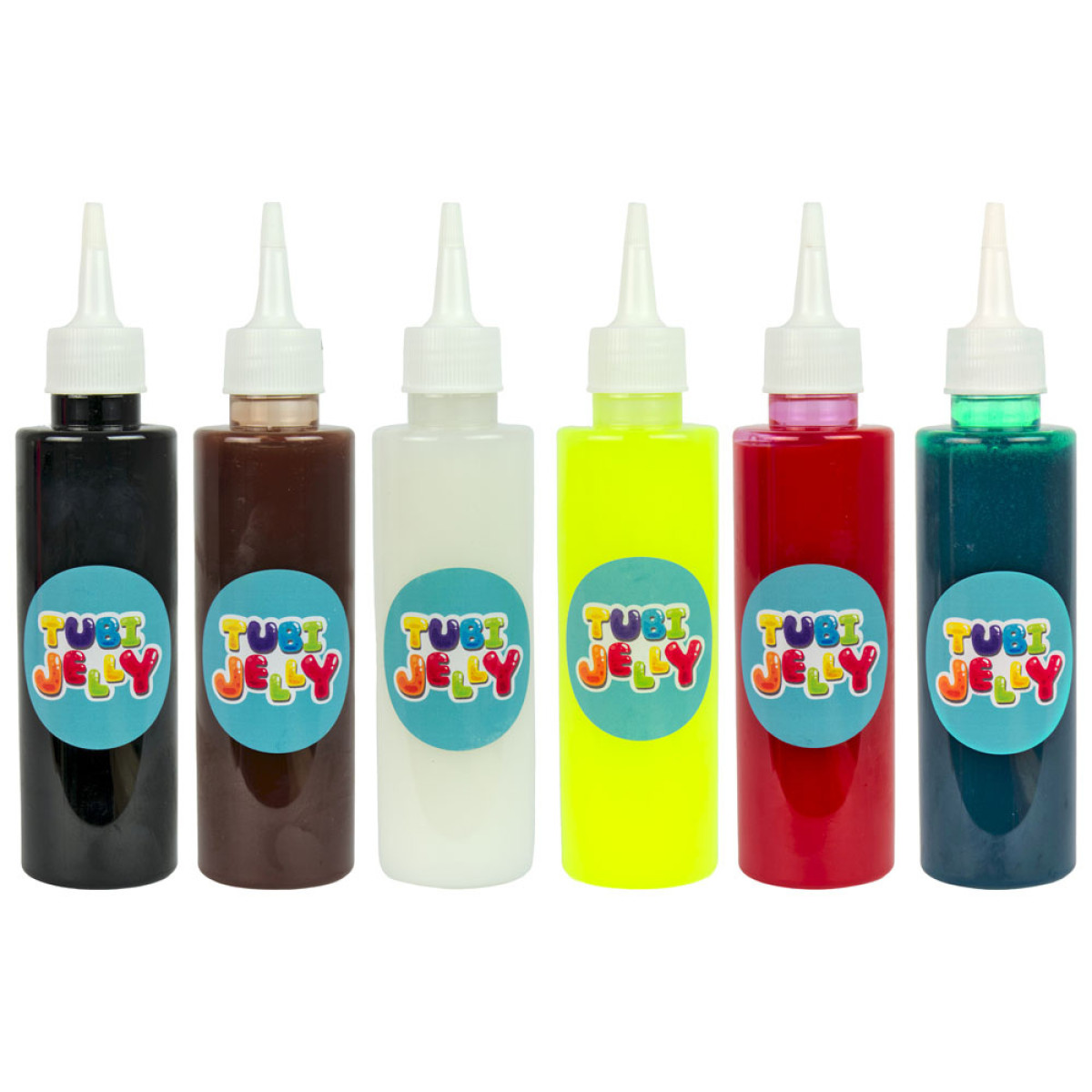 - 6 geelivedelikku, igaüks 150 ml, värvid: valge, kollane, türkiis, punane, must, pruun