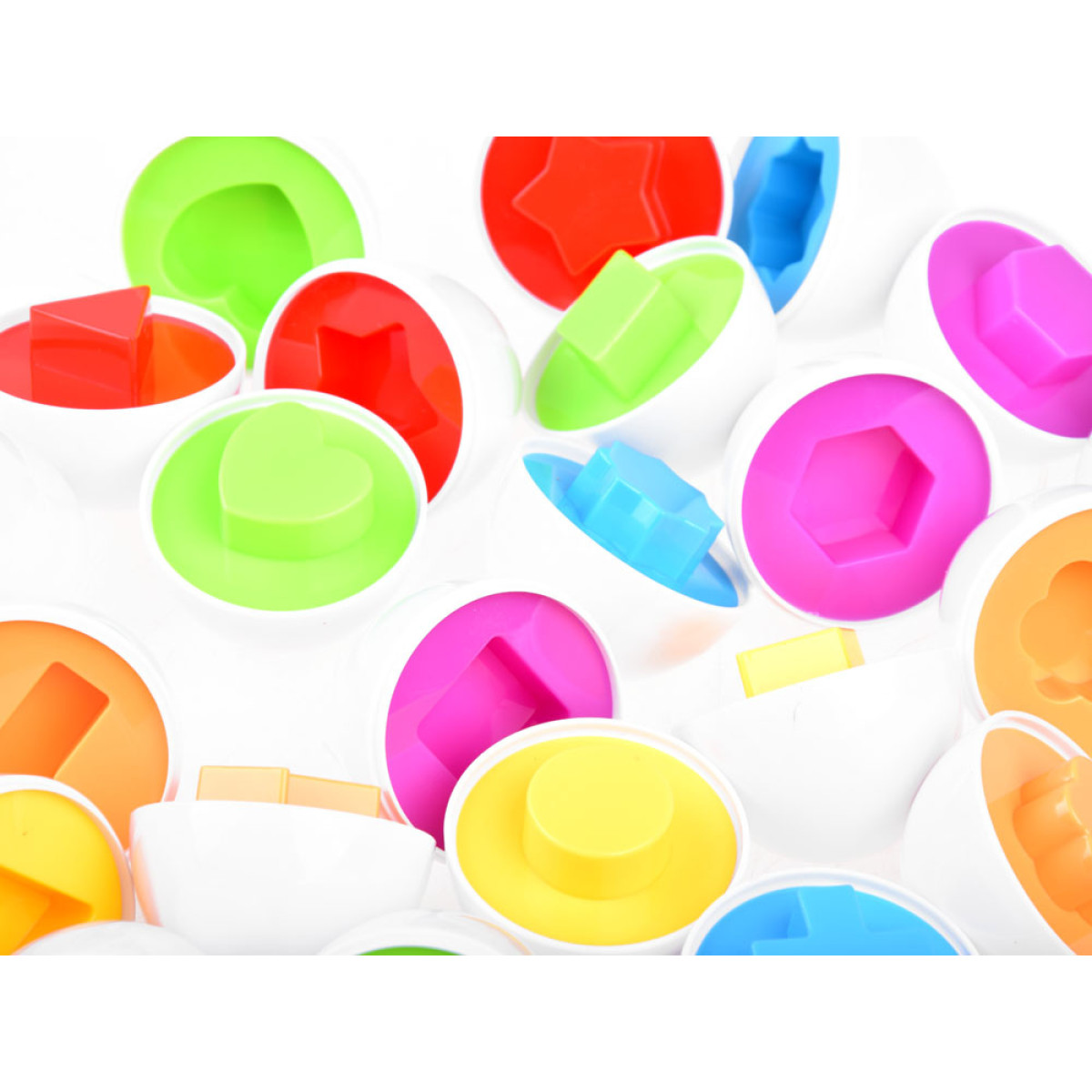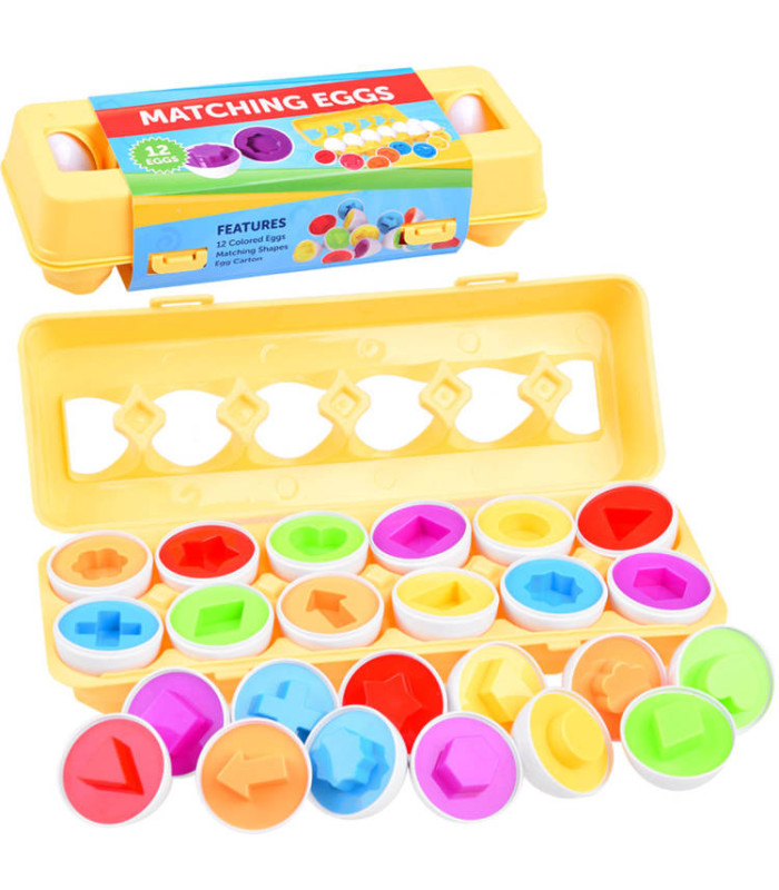 Need esmapilgul tavalised valged munad peidavad endas värvilisi kujusid, mida saab kasutada mängimiseks mitmel erineval viisil. Kahe munapooliku kokku panemine on suurepärane harjutus lastele käe-silma koordinatsiooni arendamiseks, kujundite ja värvide äratundmise õppimiseks ning nende nimetuste meelde jätmiseks. Kui lapsed suuremaks kasvavad, saab mune kasutada ka poes mängimiseks. Nagu näha, on munadega mängimiseks lugematul hulgal võimalusi.