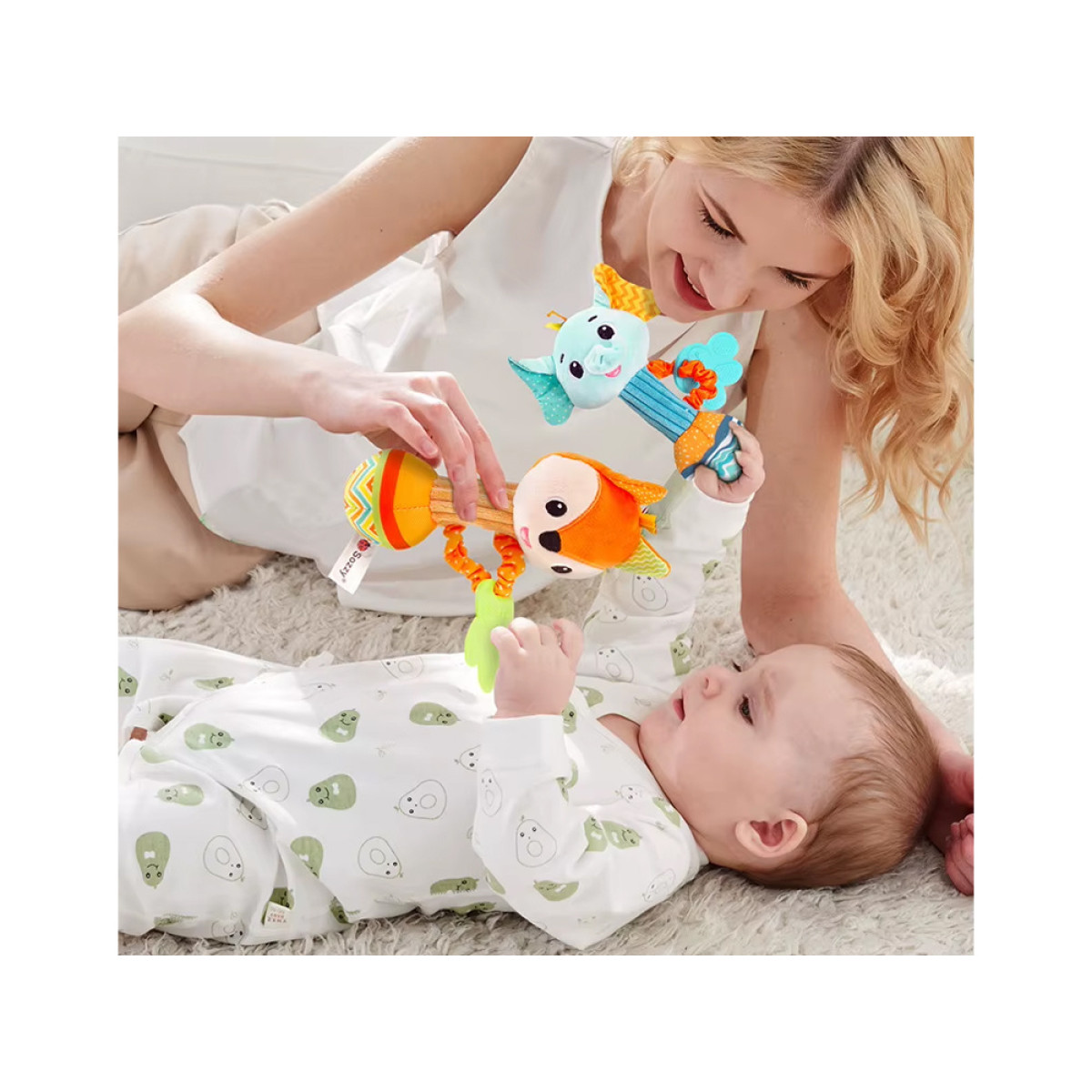 - Interaktiivsed Elemendid: Mänguasi sisaldab mitmeid helielemente. Peamine vibreeriv osa lelu sees annab õrna heli, samas kui looma kõrvad krõbisevad, kutsudes last avastama ja mängima.