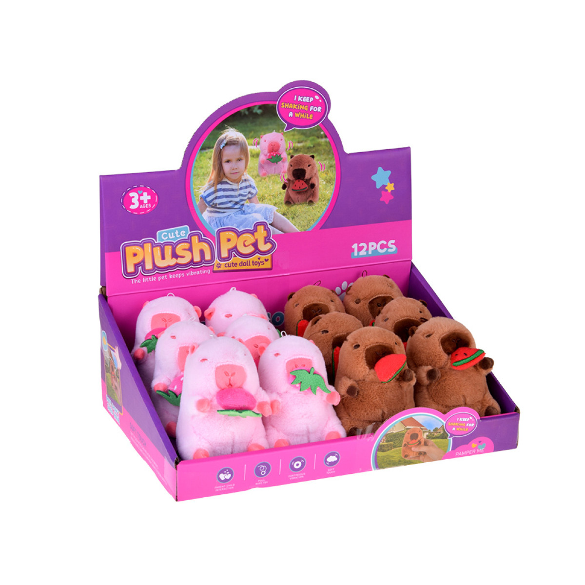 - Kui tõmmata arbuusi, hakkab mänguasi vibreerima ja puuvili naaseb nööri kaudu loomakese suhu, kapibara näeb välja, nagu naudiks mahlast arbuusi