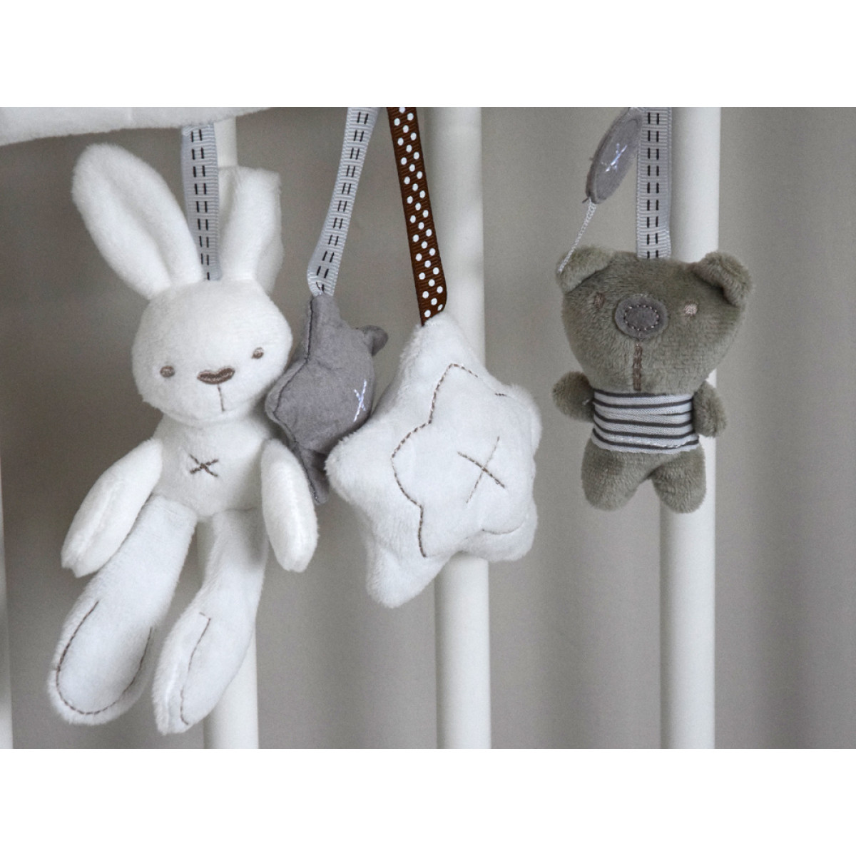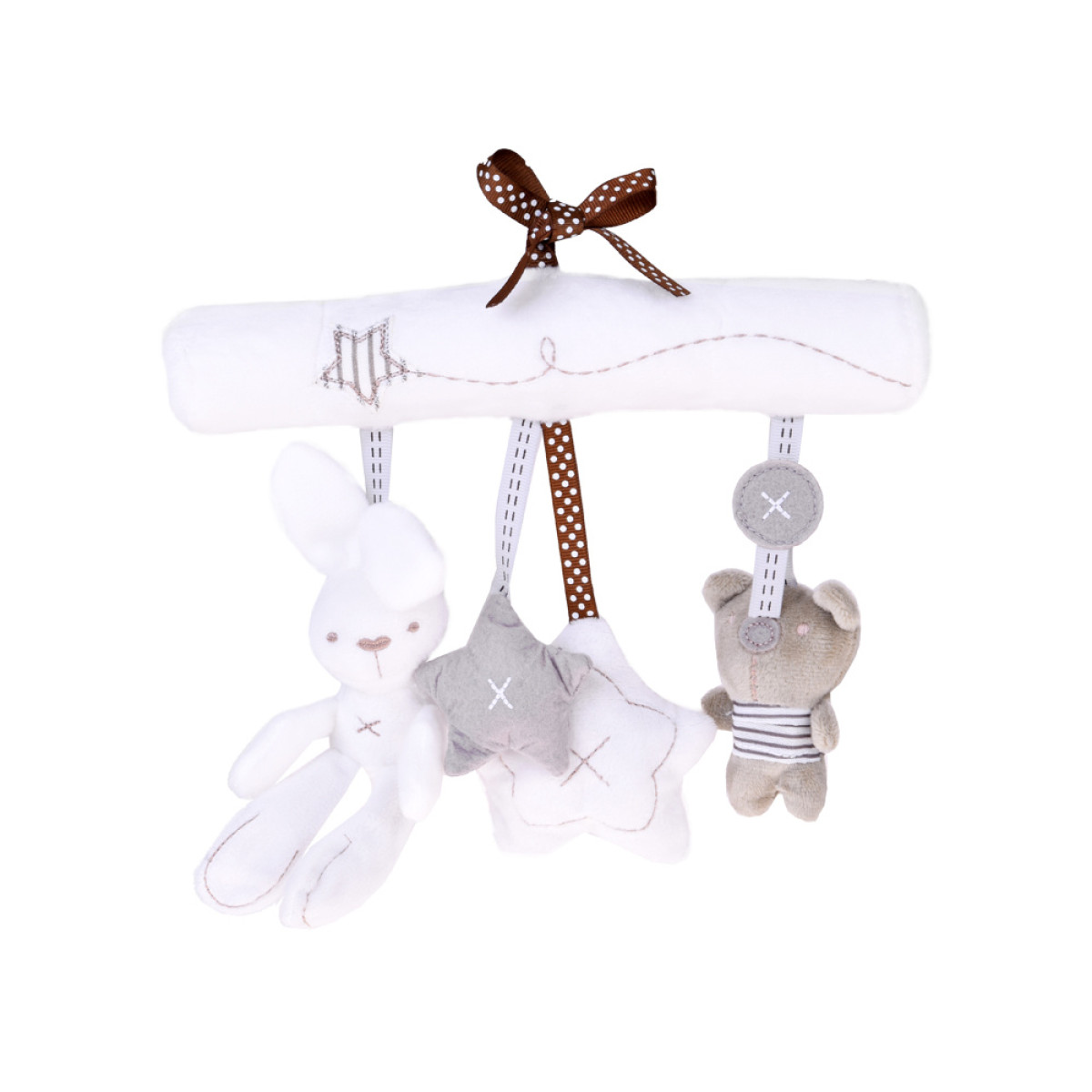 Armas pehme ripats neutraalsetes ja rahulikes toonides sobib nii hälli kui ka jalutuskärusse mänguasjana.