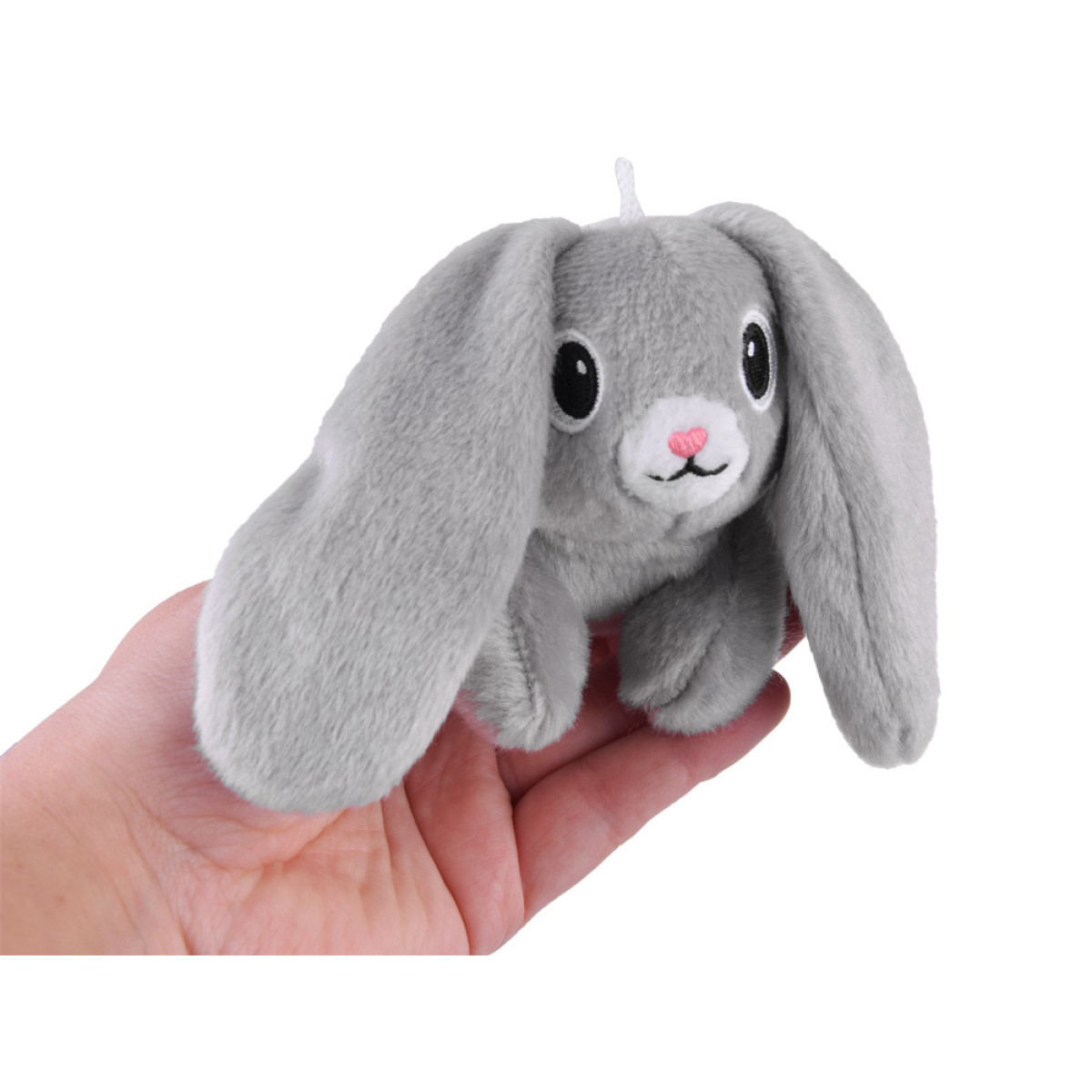 Jänku on valmistatud pehmest, meeldivast plüüsist. Selle silmad, nina ja naljakas nägu on tikitud, mistõttu on mänguasi täiesti ohutu ka väiksematele lastele. Tähelepanu tõmbavad ka suured, rippuvad kõrvad ja väike saba. Mänguloom seisab iseseisvalt. Lisaks on sellel väike aas peas, tänu millele võib see saada armsaks võtmehoidjaks seljakotil või käekotil.