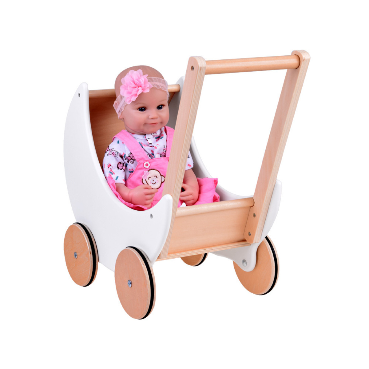 Võluv puidust retro nukkude tõukekäru lastele ZA5484