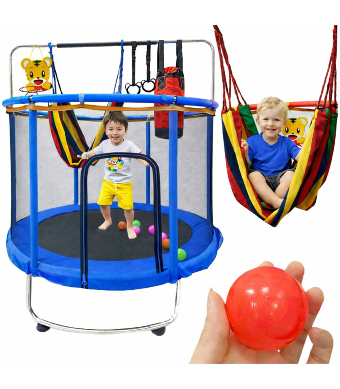 Laste batuut koos tarvikutega - ümmargune batuut kaitsevõrguga aeda