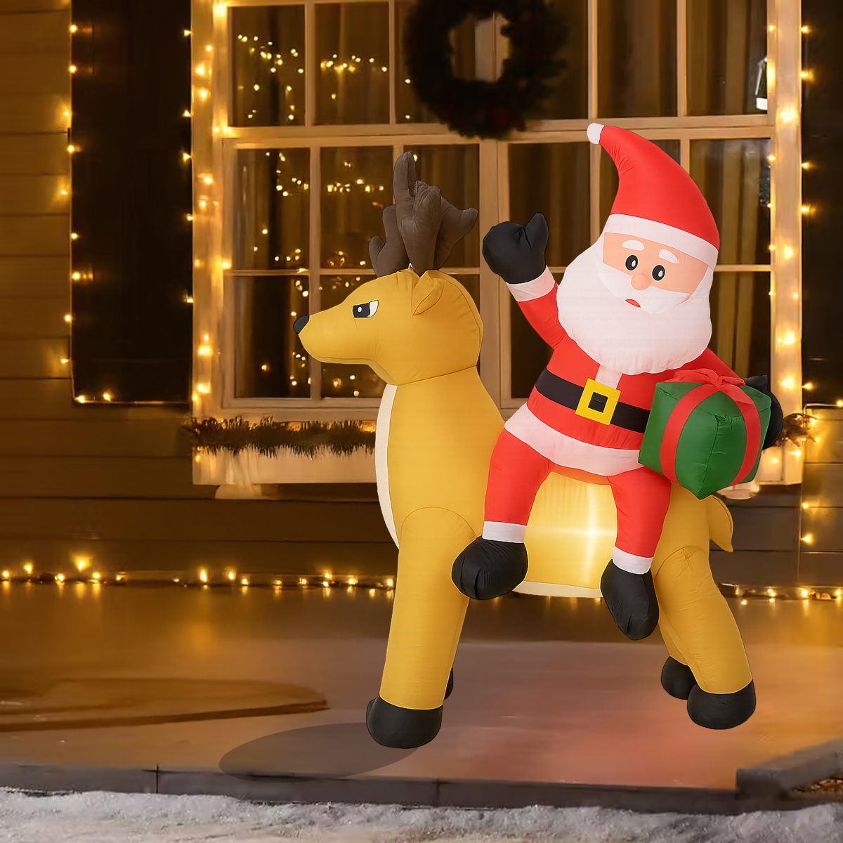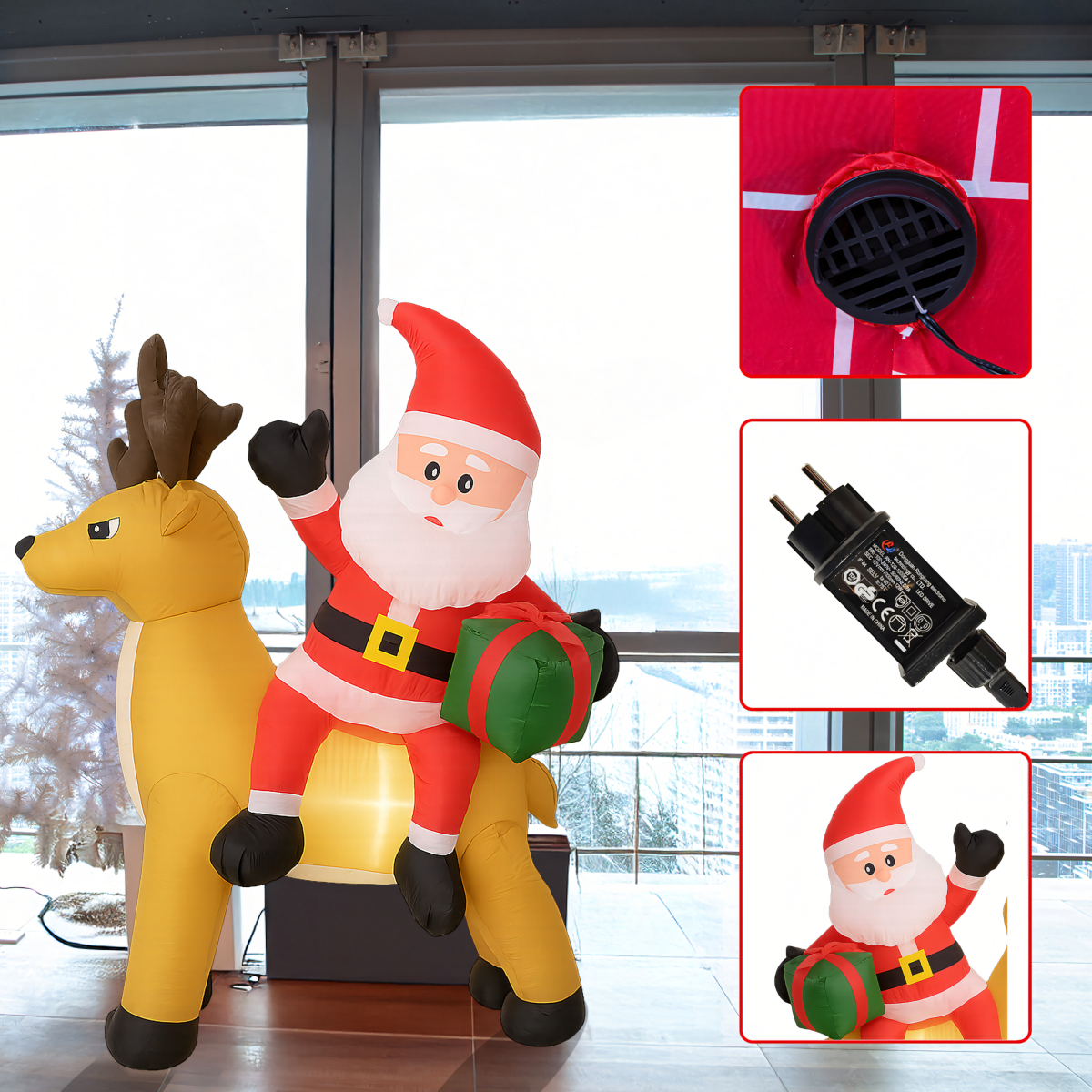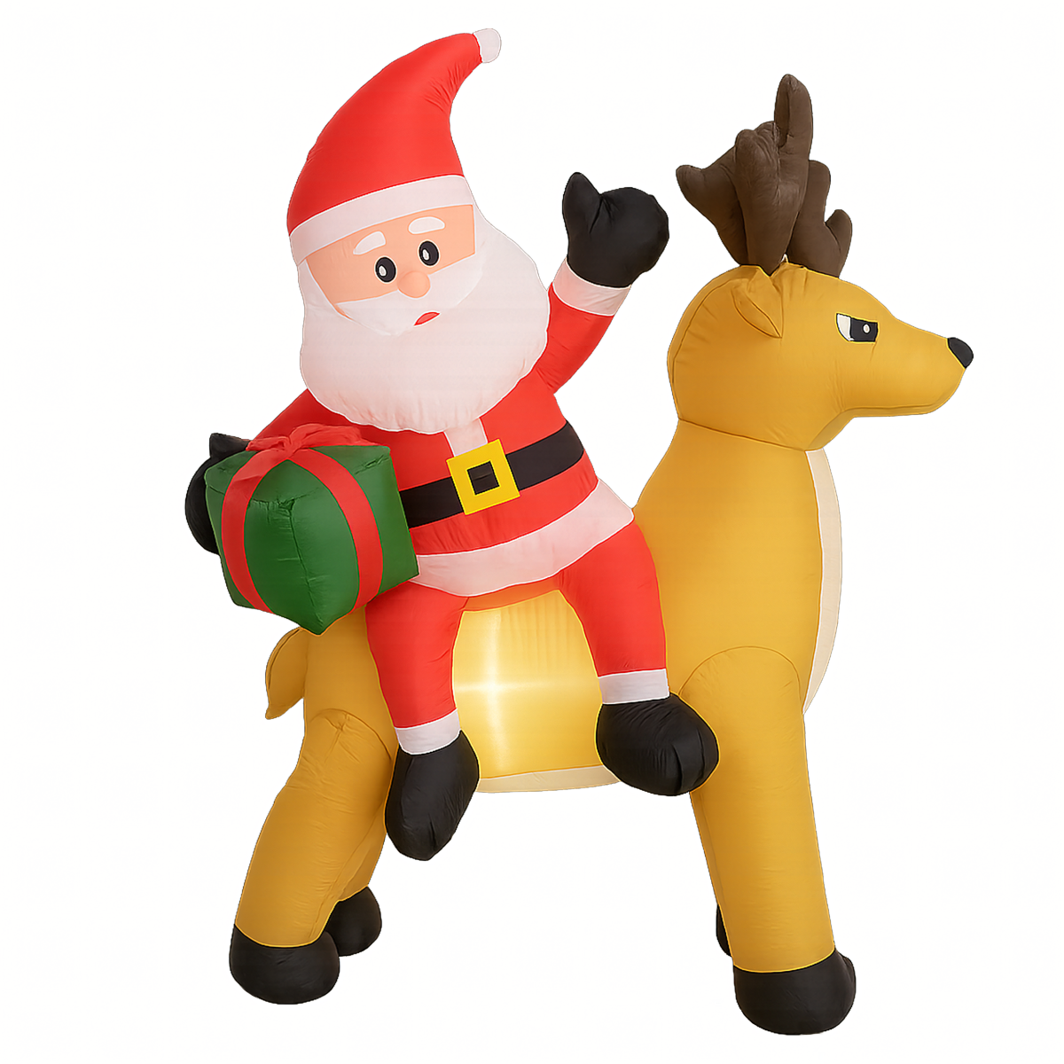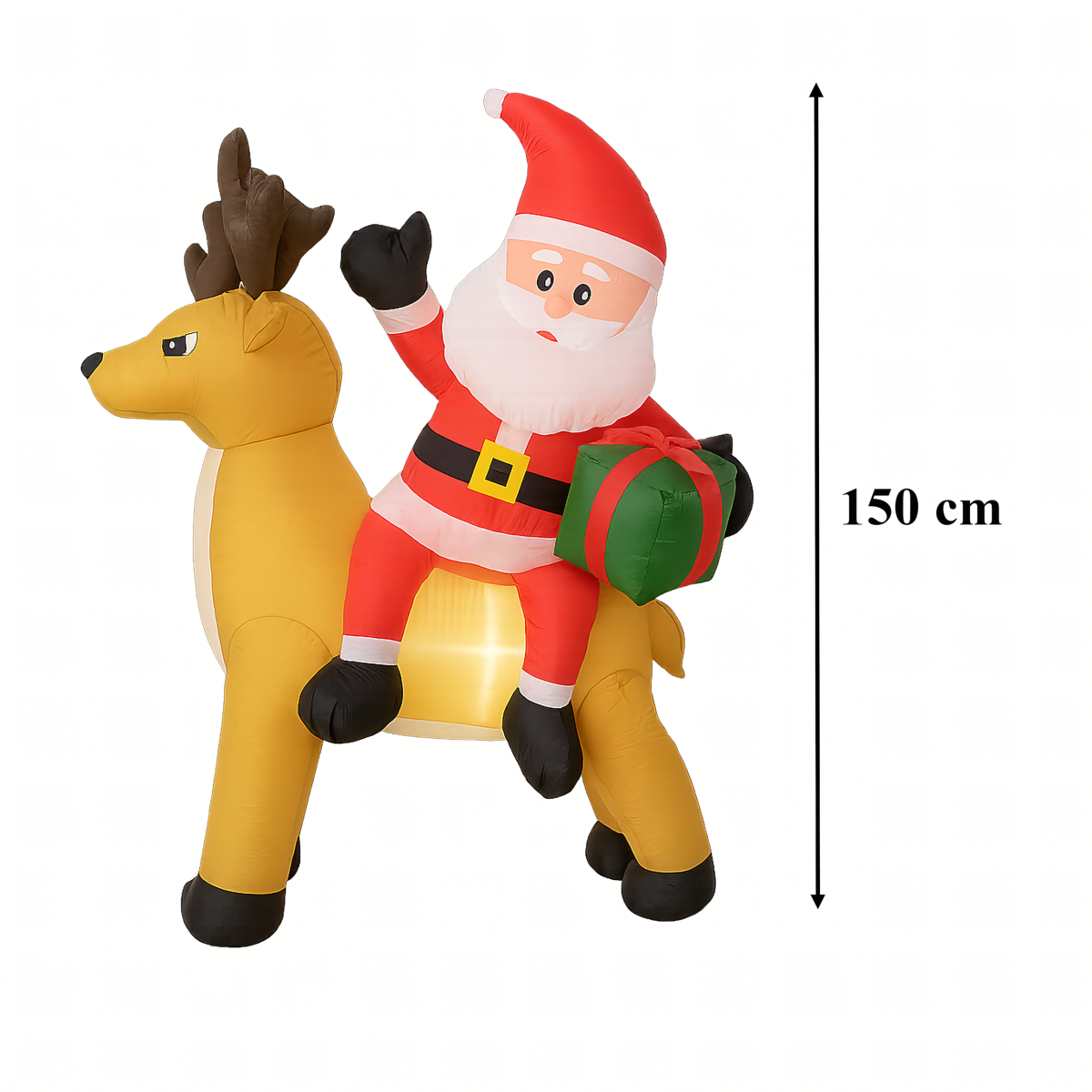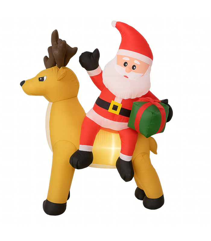 Täispuhutav Jõuluvana põhjapõdraga 1,5 m on muljetavaldav jõulukaunistus, mis valgustab sinu kodu ja aeda. Varustatud LED valgustuse ja automaatse ventilaatoriga, on see kasutusvalmis mõne minutiga. Valmistatud vastupidavast polüesterkangast, ilmastikukindel – ideaalne nii väljas kui ka siseruumides kasutamiseks.