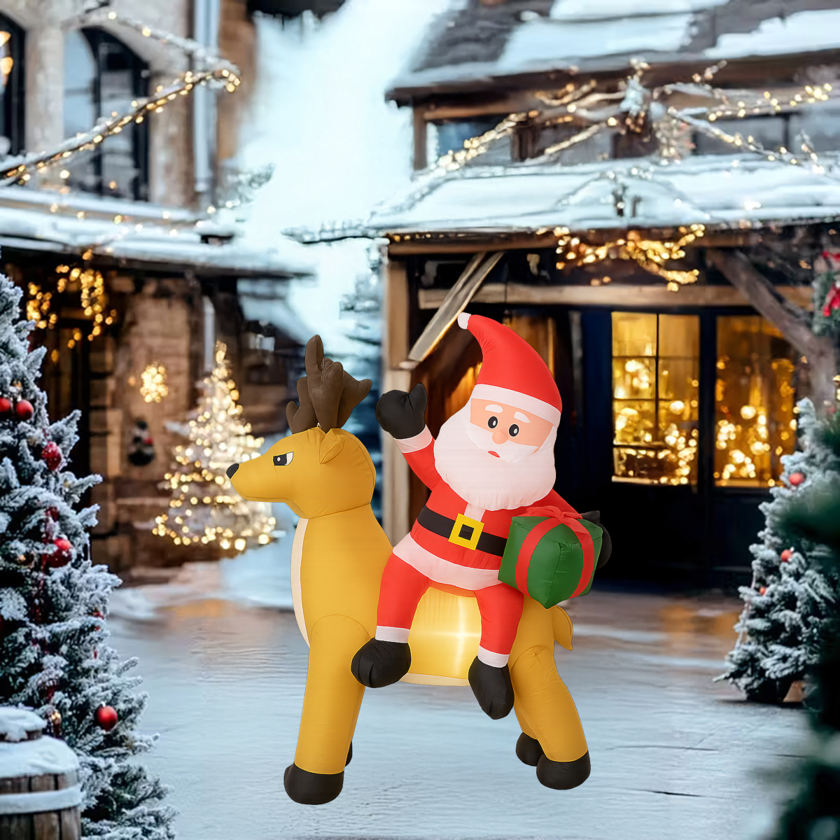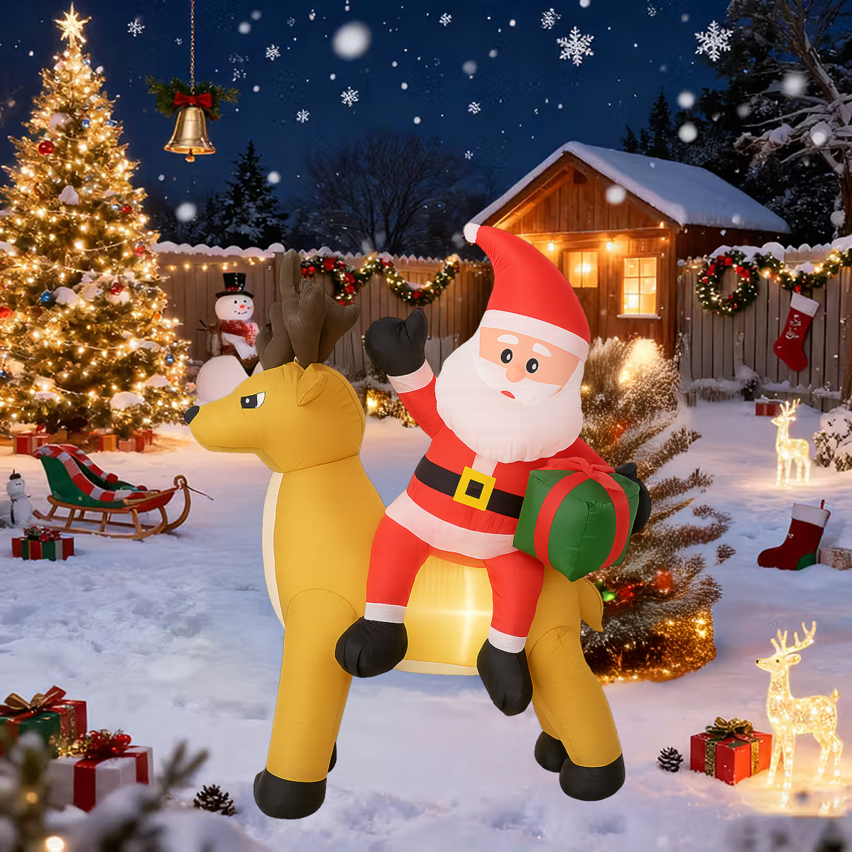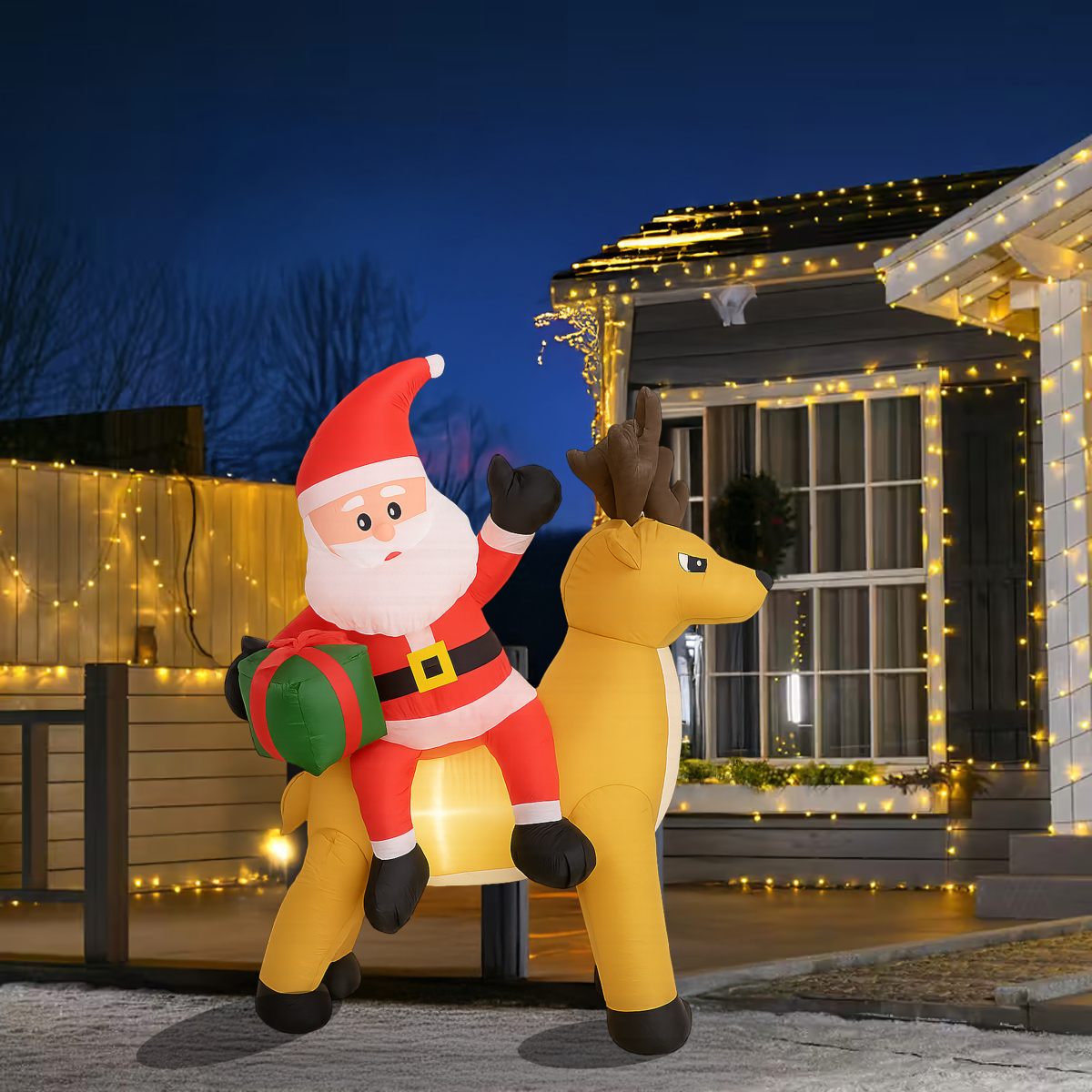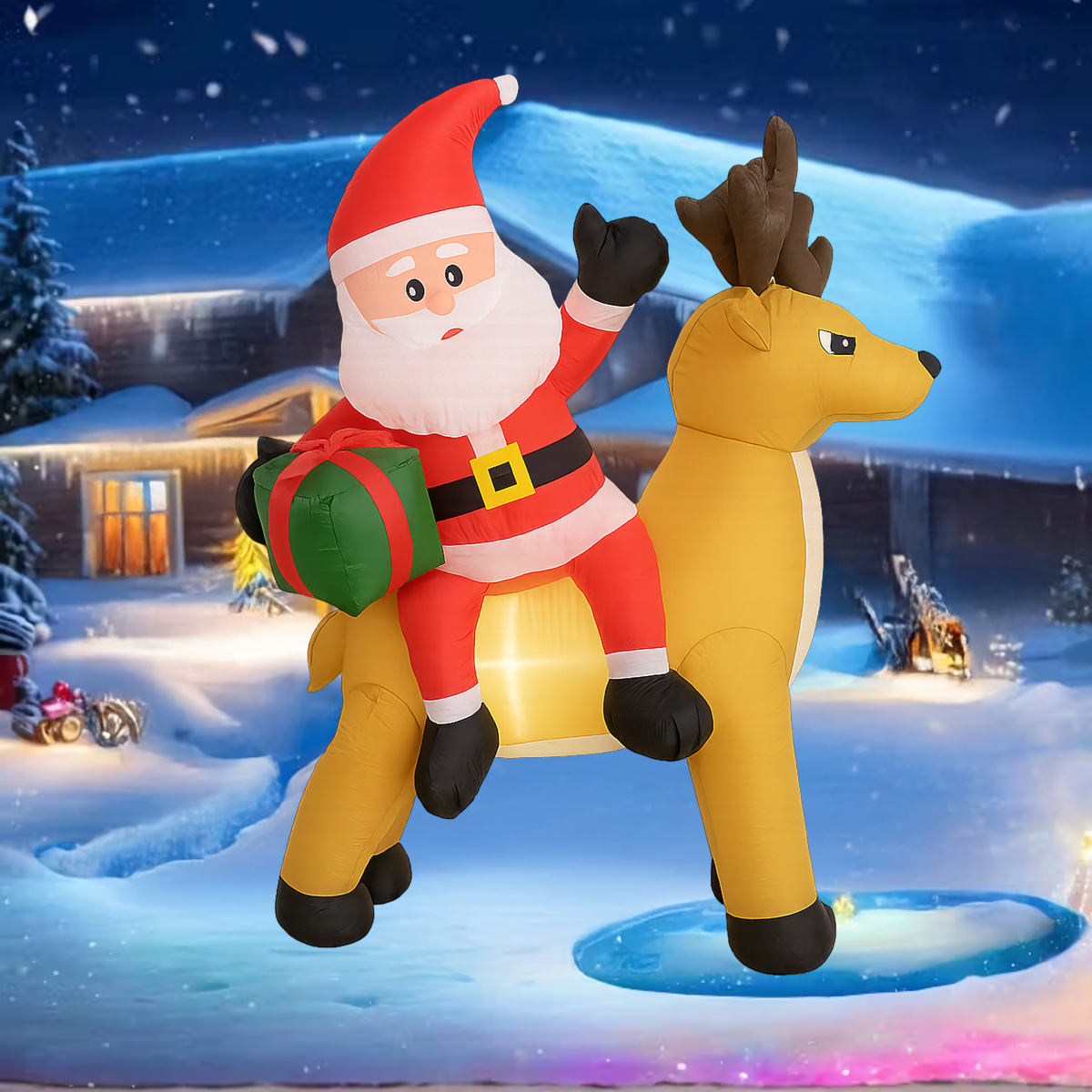 Täispuhutav Jõuluvana põhjapõdraga 1,5 m on muljetavaldav jõulukaunistus, mis valgustab sinu kodu ja aeda. Varustatud LED valgustuse ja automaatse ventilaatoriga, on see kasutusvalmis mõne minutiga. Valmistatud vastupidavast polüesterkangast, ilmastikukindel – ideaalne nii väljas kui ka siseruumides kasutamiseks.