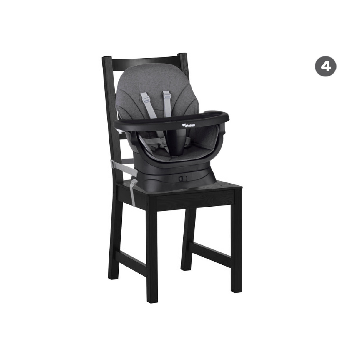 - Täiendtool söögilauale – tänu kinnitusribadele kinnitate turvaliselt tooli tavalise tooli külge, et laps saaks istuda laua ääres koos pereliikmetega, õppides ühise toidukorra reegleid.