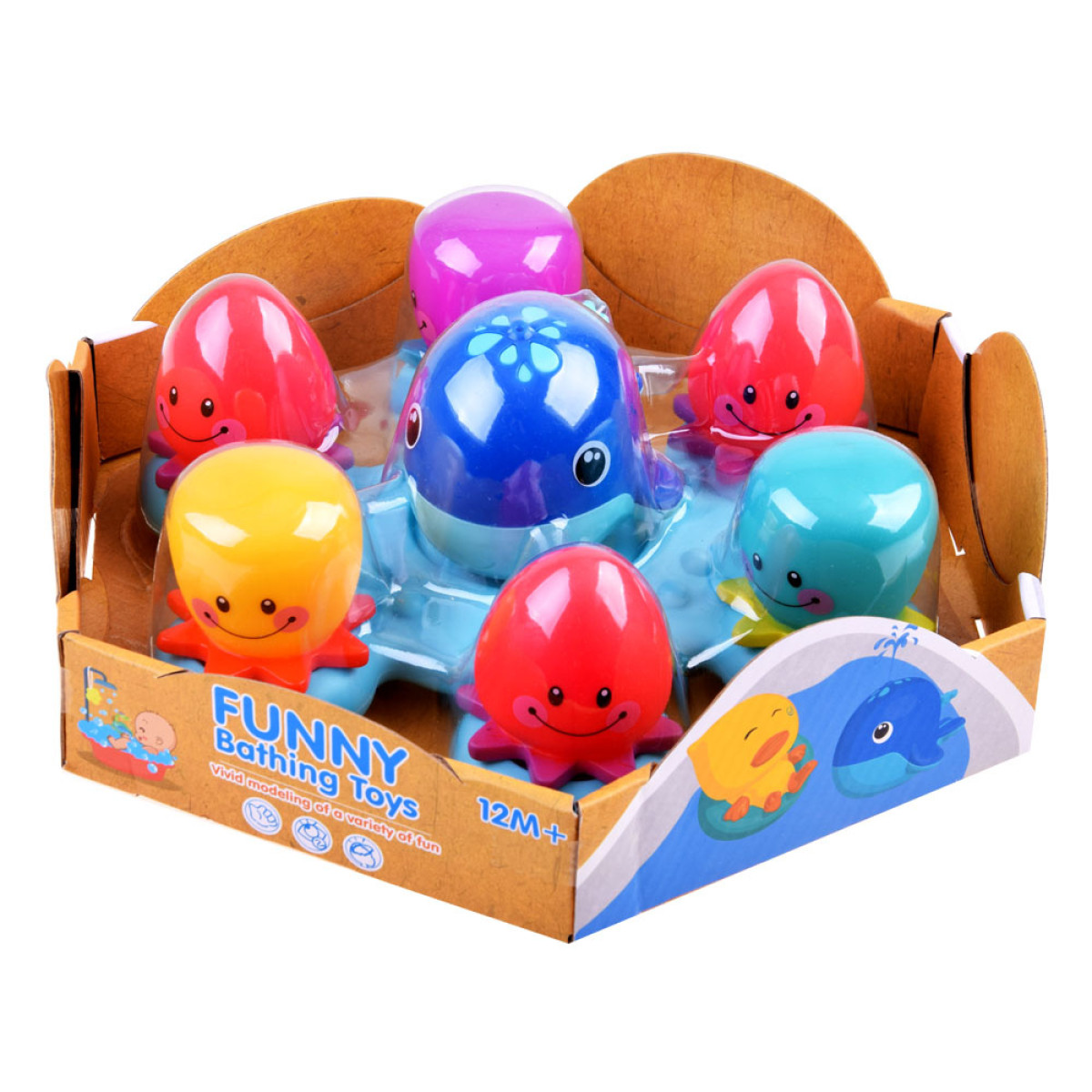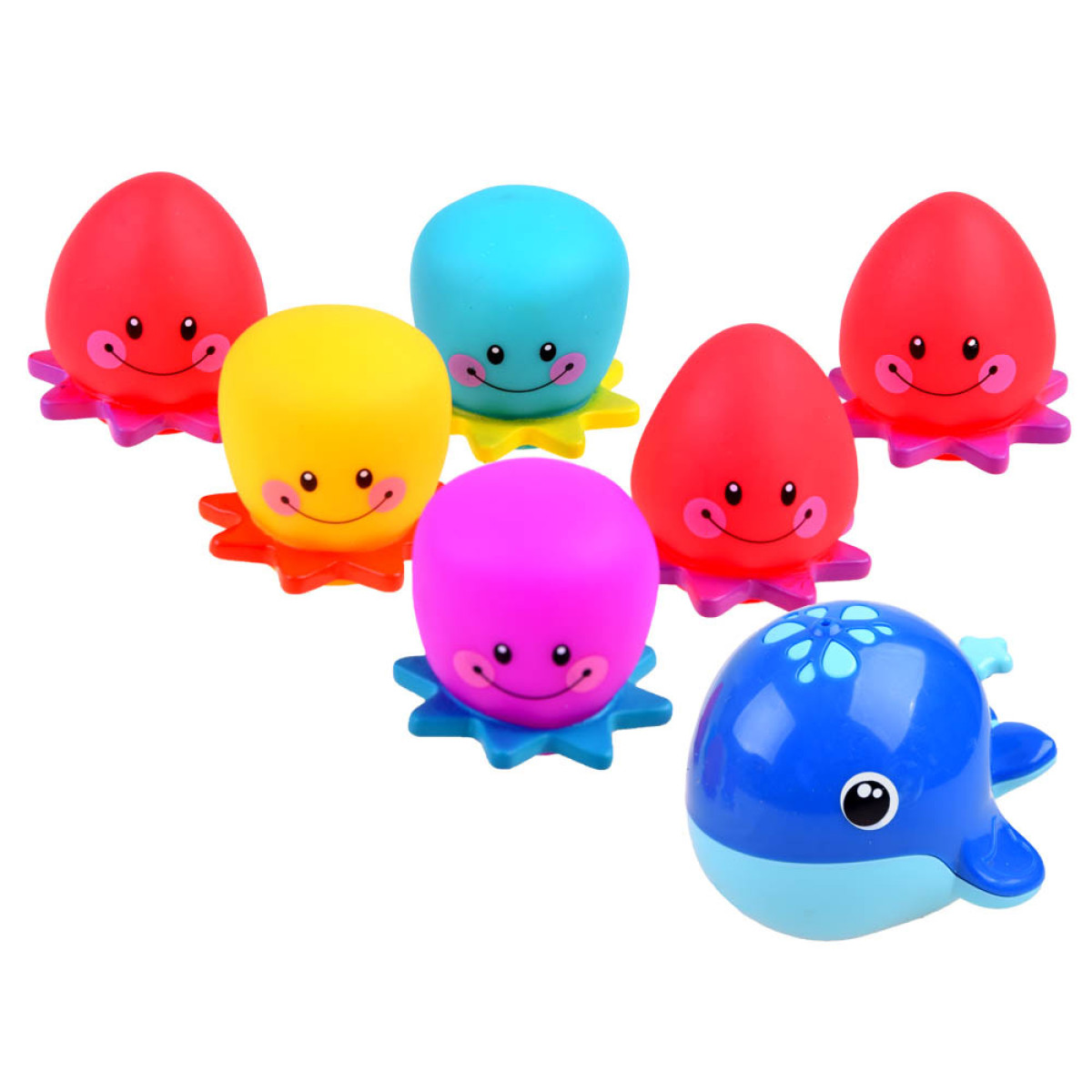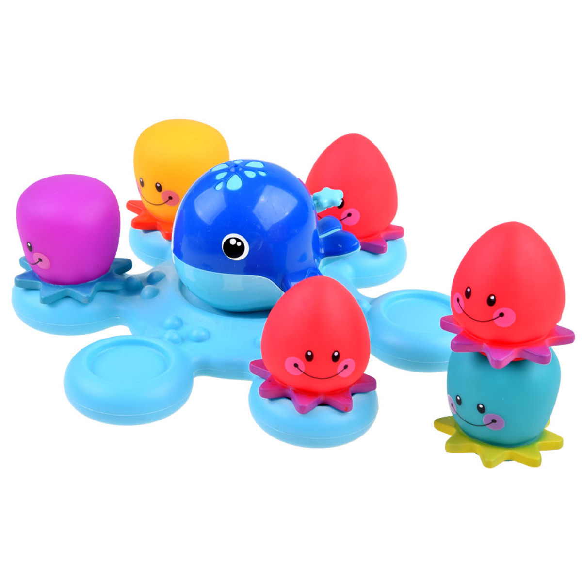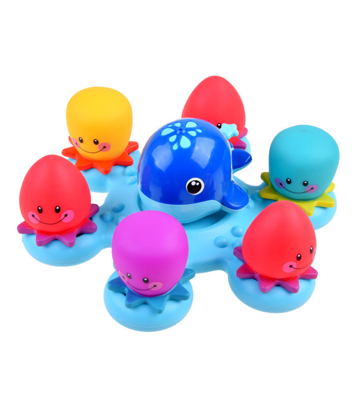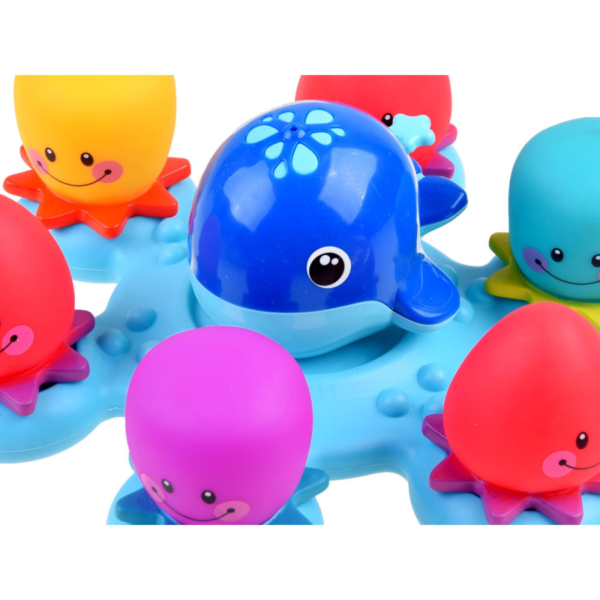Tänu ujuvale saarele saab laps mänguasja enda lähedal hoida. Mänguasi õpetab üksikute elementide paigutamist õigesse auku, mis on kasulik lapsele esemete oma kohale asetamise õppimiseks. Kaheksajalad saab kinnitada ka vannitoa plaatidele, luues nii armsa värvika pildi. Vaalal on veepumpamise nupp, mis võimaldab välja mõelda erinevaid mänge.