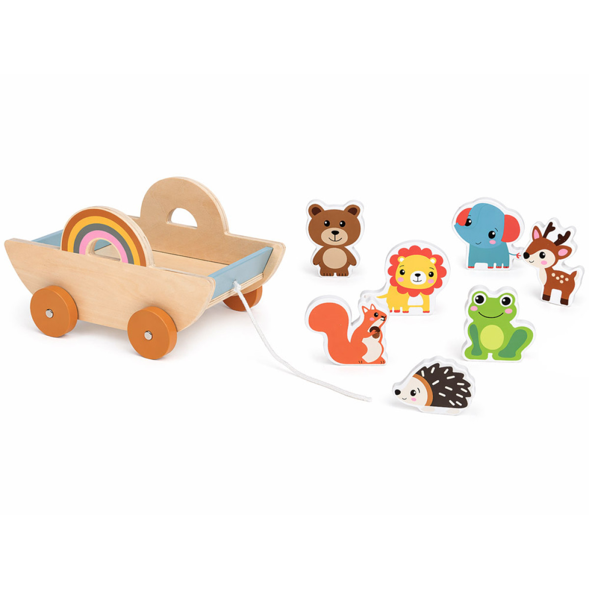 vahva loomakäru kutsub lapse lõbusale sõidule ja pakub mitu armastatud mänguviisi ühes mänguasjas. laps saab käru enda järel vedada, loomi transportida, nendega eraldi mängida ning luua oma lugusid ja seiklusi.