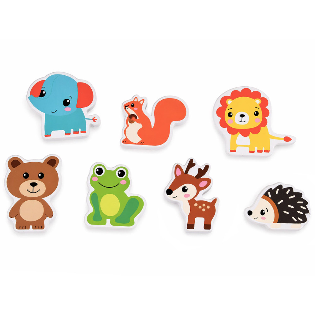 Komplektis on 7 puidust looma, mis on valmistatud sama hoolikalt ja kvaliteetselt. igal loomal on päris loomast inspireeritud kuju, värv ja armas kujundus. kõik loomad on rõõmsa ilmega ning sobivad suurepäraselt nii iseseisvaks mänguks kui ka rollimängudeks.