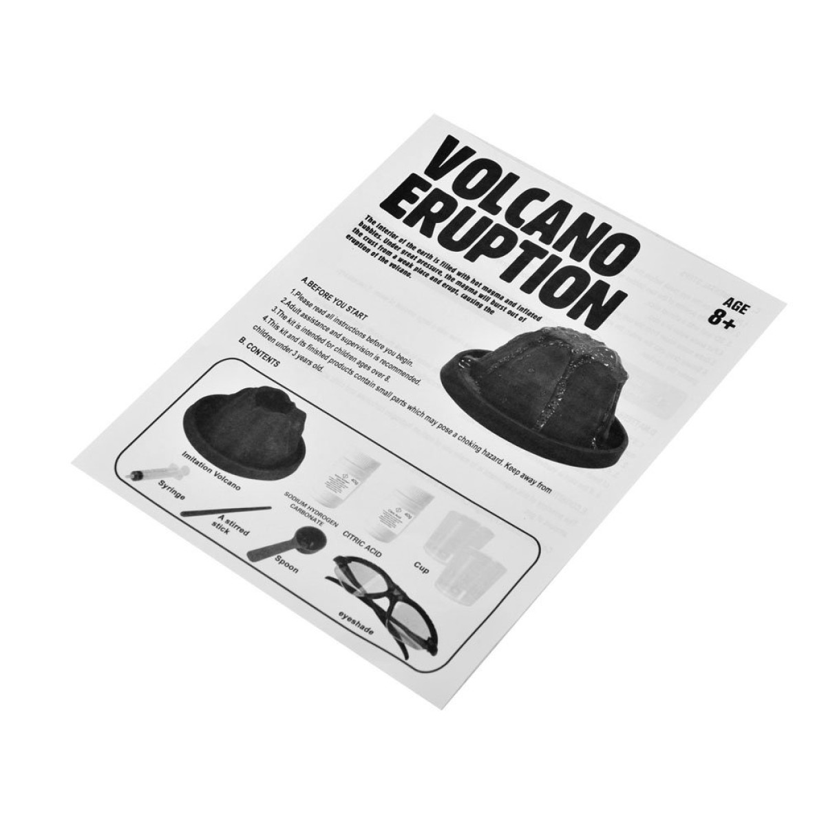 Komplekt on valmistatud kõrgeima kvaliteediga materjalidest. Plastist vulkaani alus võimaldab eksperimenti korduvalt läbi viia ning pulbri anumaid ja kaitseprille on korralikult kaitstud, et tagada ohutus.