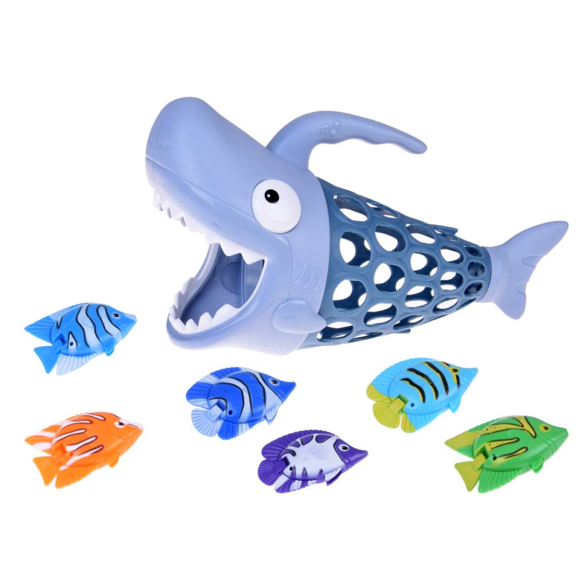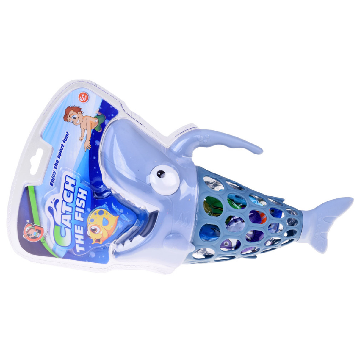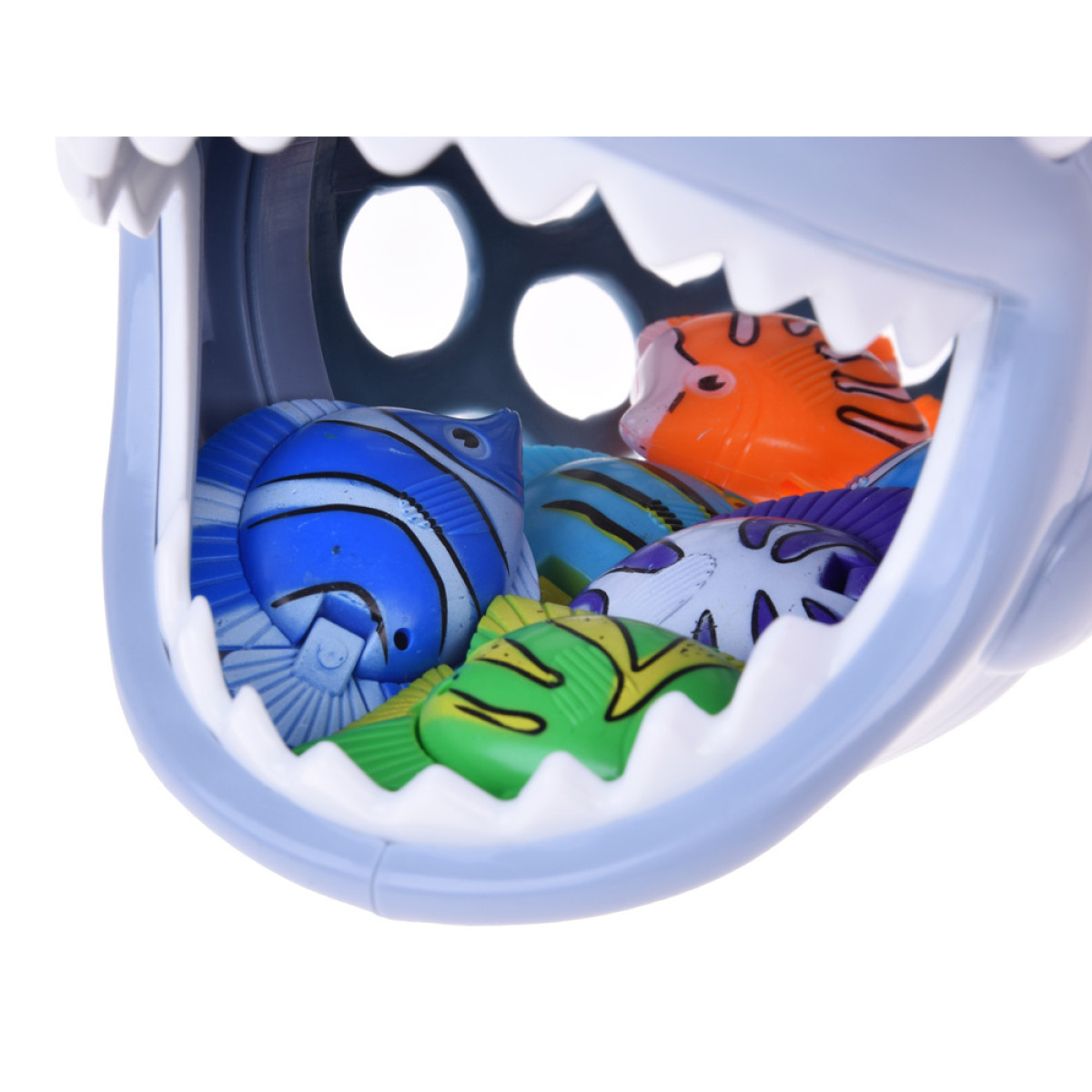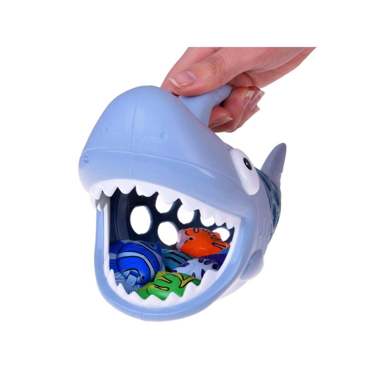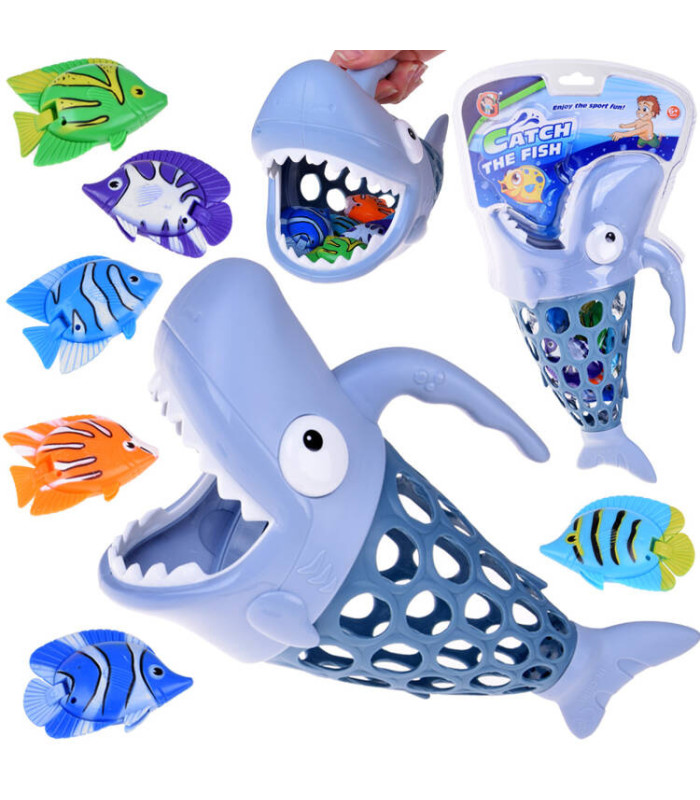 komplektis on 6 värvilist kala, mida saab püüda spetsiaalse hai kujulise korviga. Laps peab olema kiire ja täpne, et kalad edukalt kätte saada. Mäng sobib suurepäraselt nii iseseisvaks tegevuseks kui ka ühiseks ajaveetmiseks.