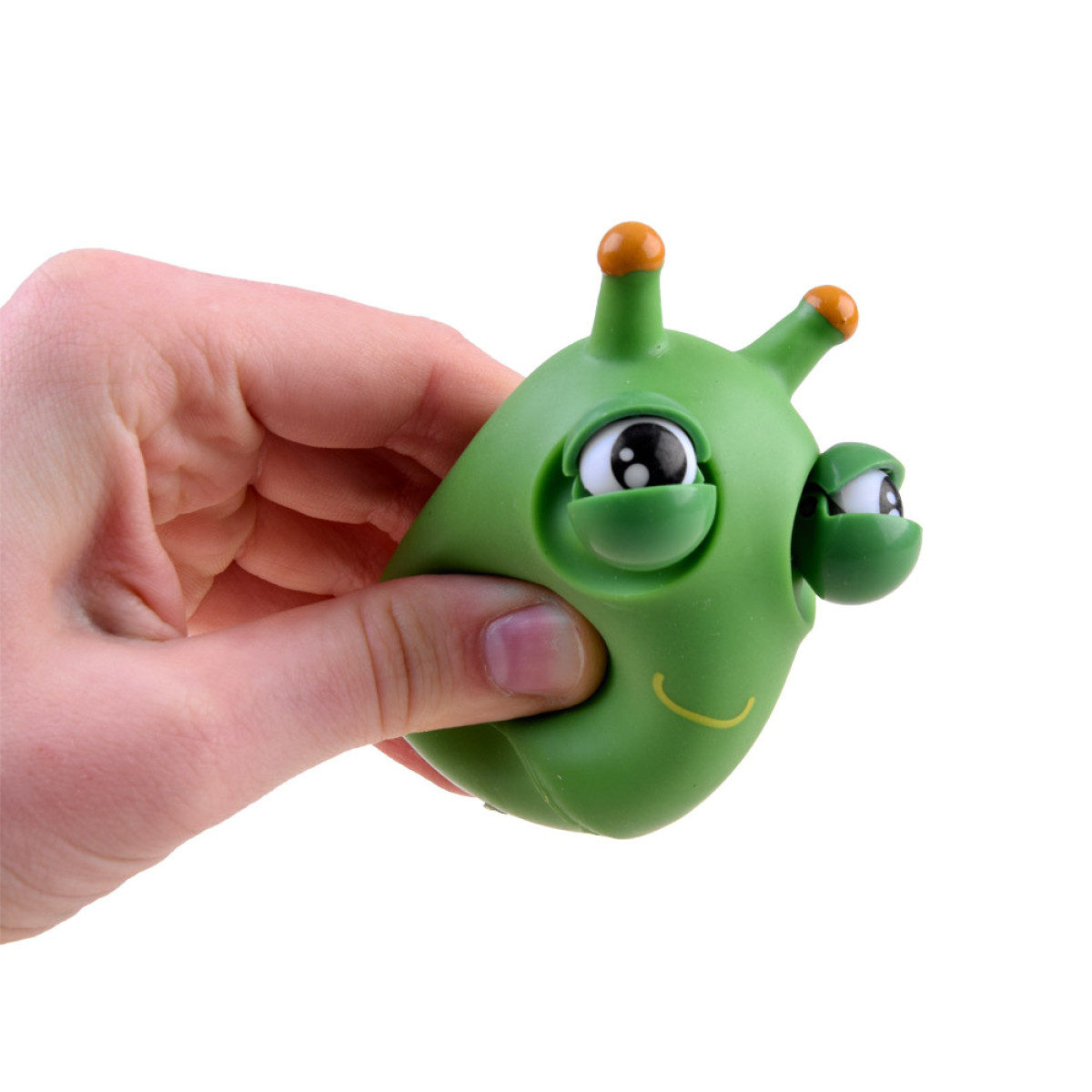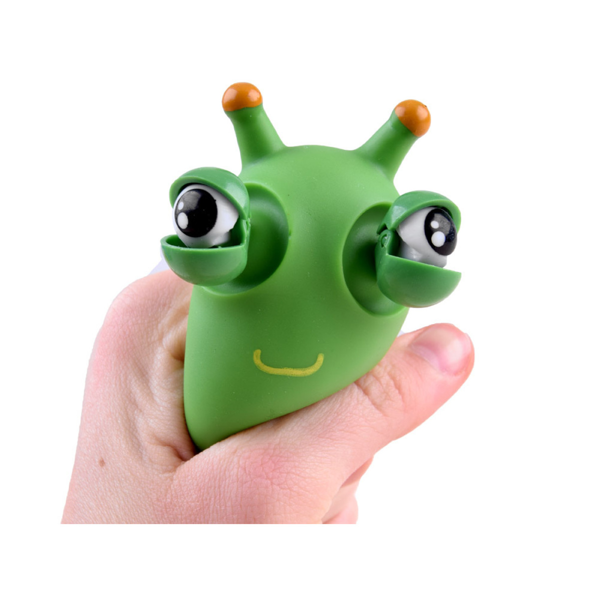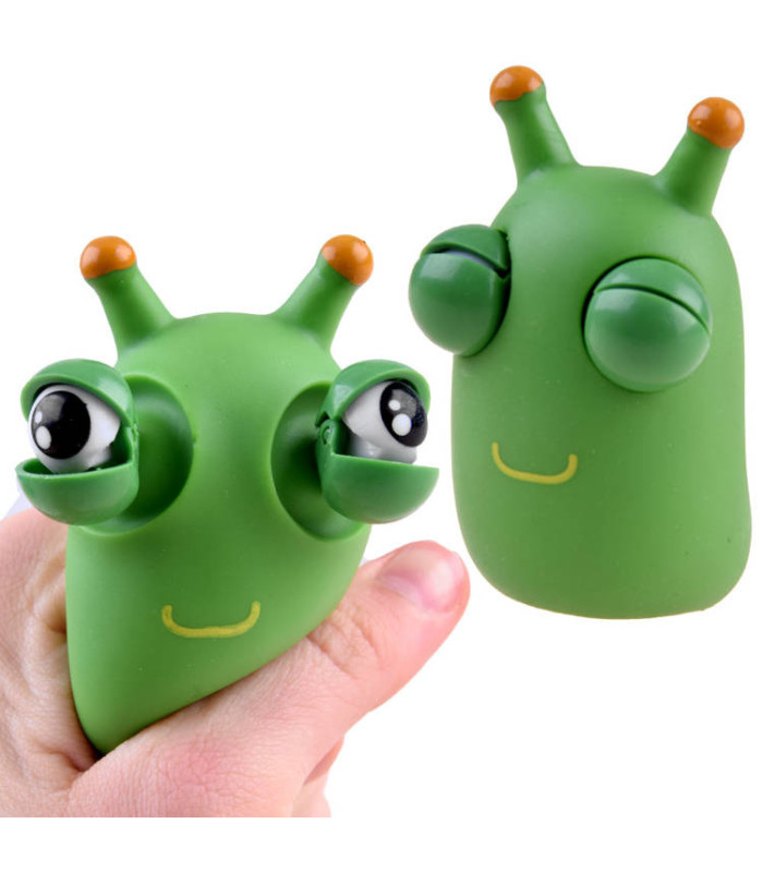 Rohelist tegelast pigistades avanevad selle silmad naljakalt. Mänguasjal ei ole välist pakendit.
