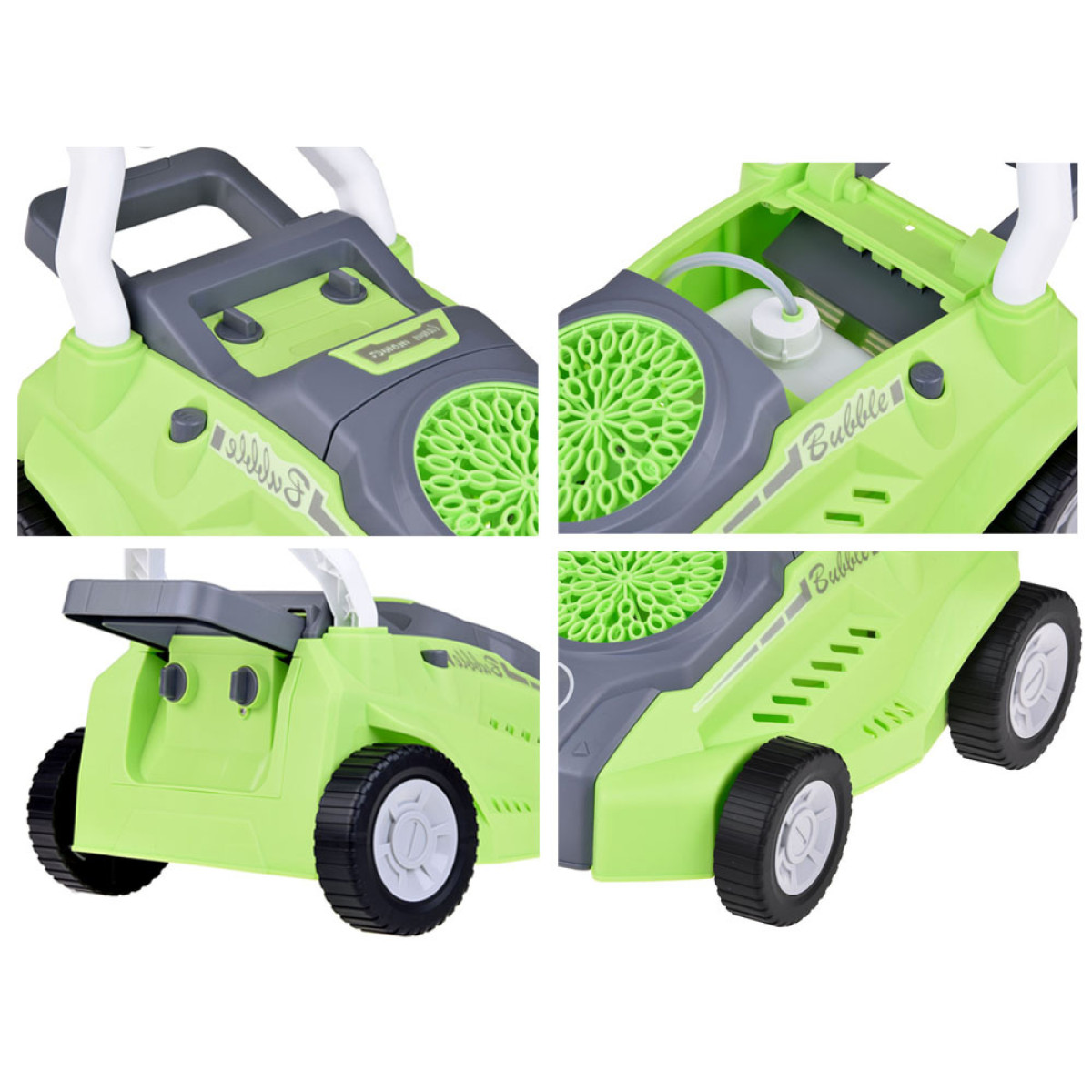 Mängu alustamine on äärmiselt lihtne – täitke paak mullivedelikuga ja käivitage muruniiduk nupuvajutusega. Selle tulemusena tõusevad kaunid mullid kiiresti õhku, luues maagilise atmosfääri.