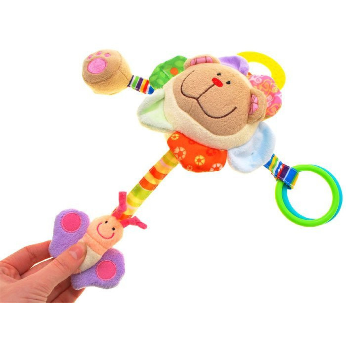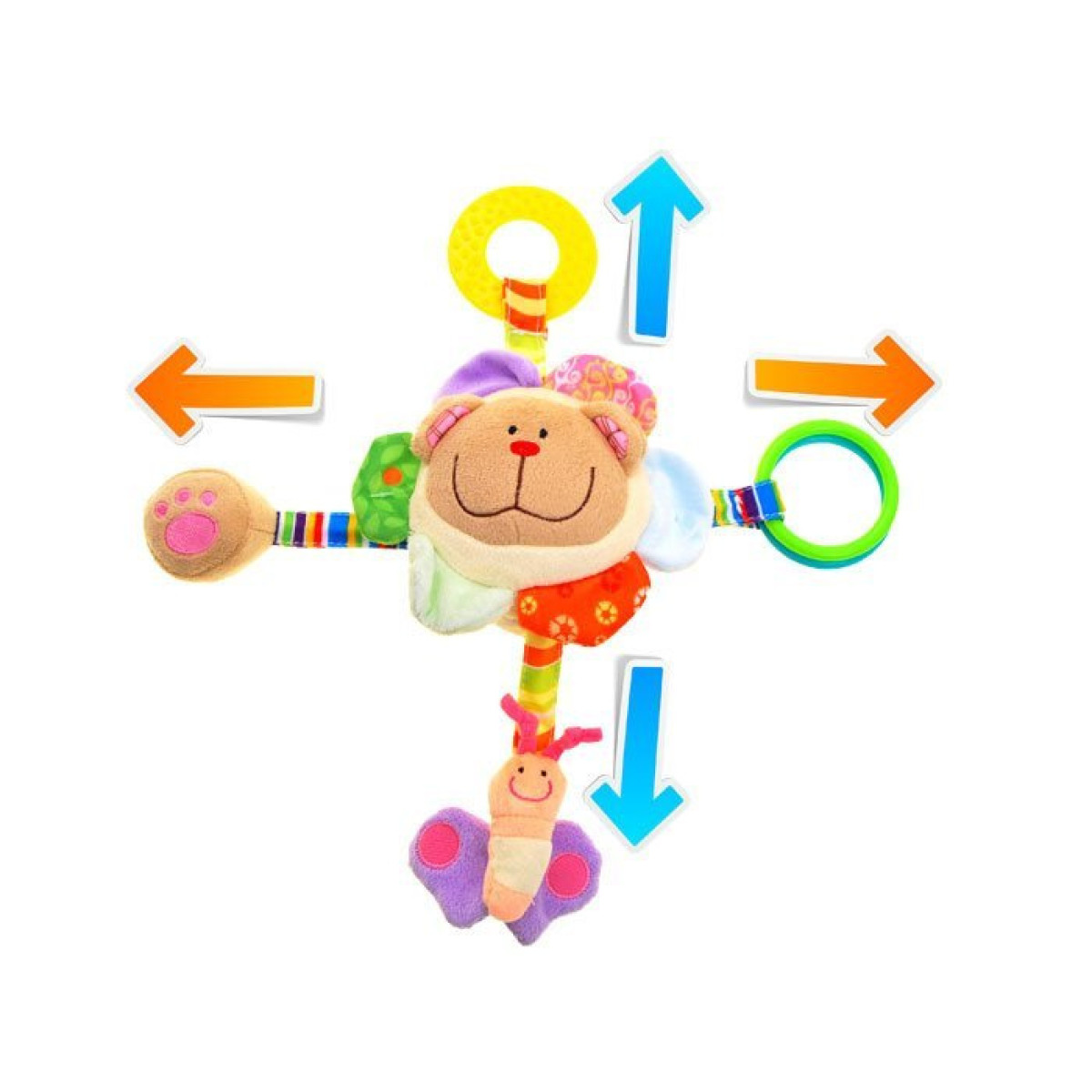Viige beebi põnevate meelte maailma selle armsa plüüskaru riputise abil. Õrnad pastelsed värvid, pehmed materjalid ja erinevad tekstuurid ning helid stimuleerivad lapse sensoorse arengu alates esimestest elukuudest.