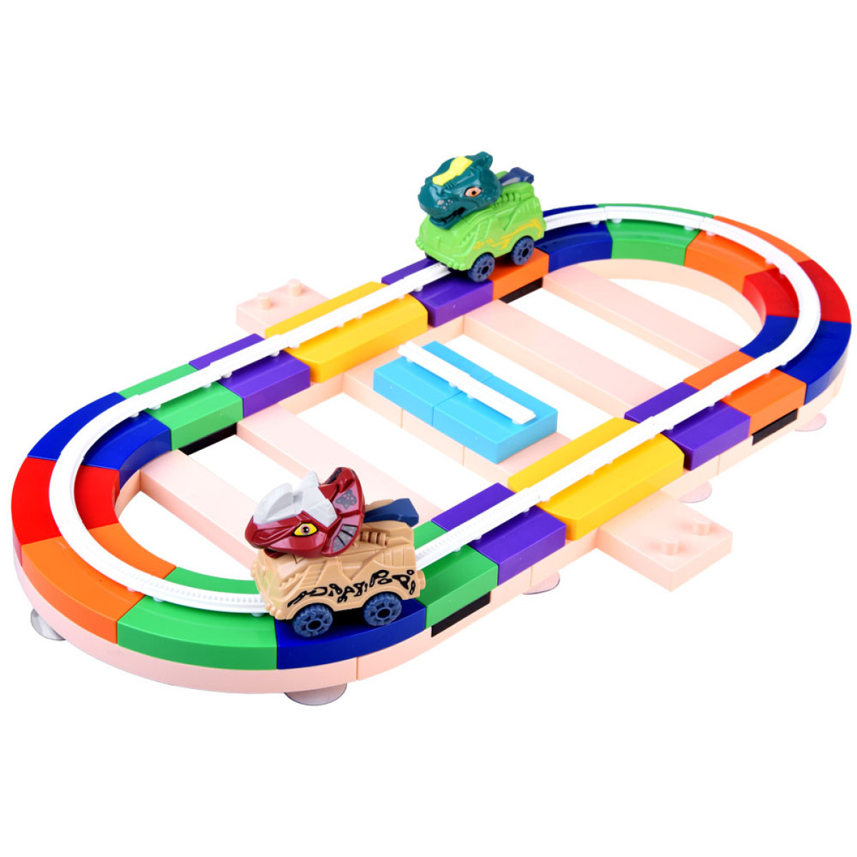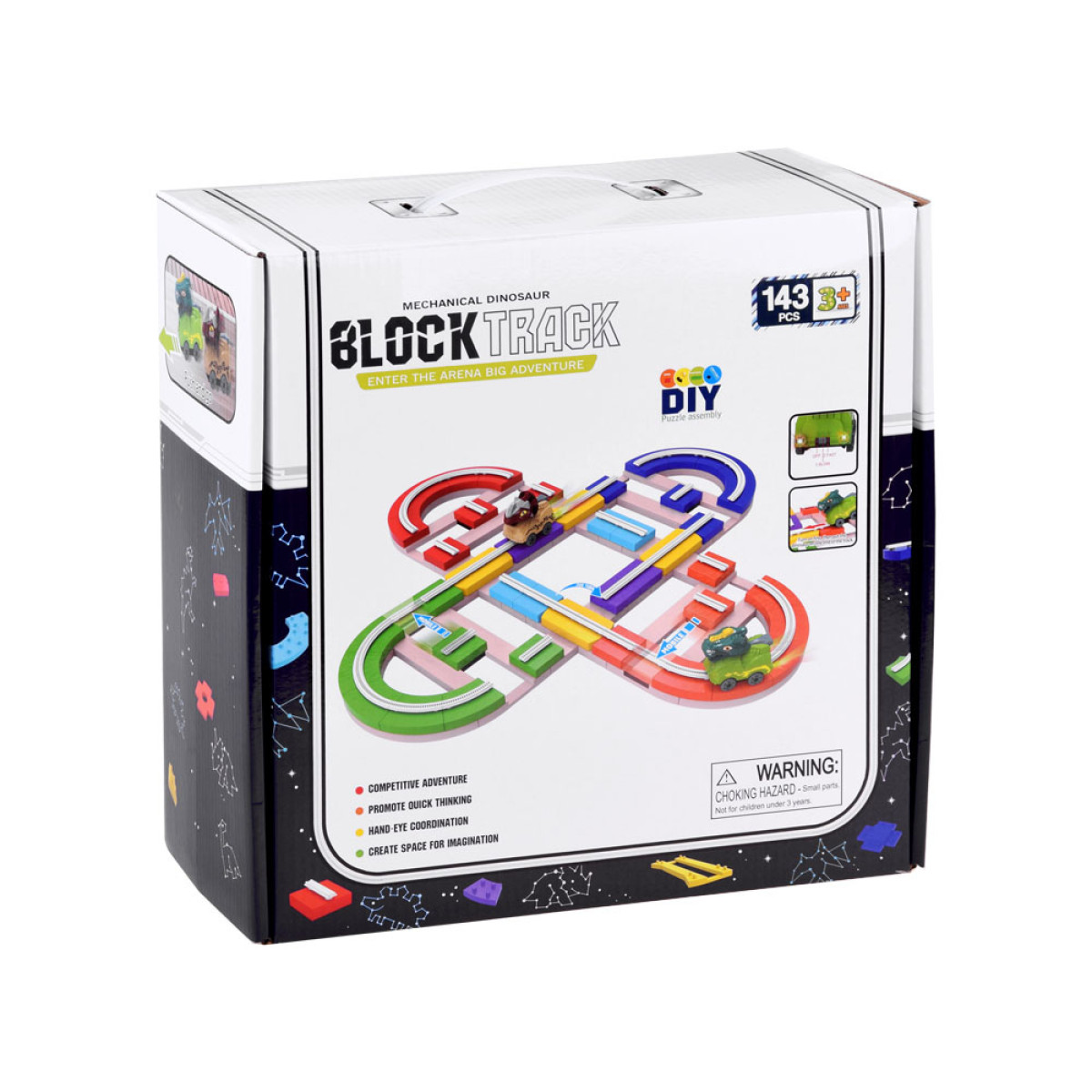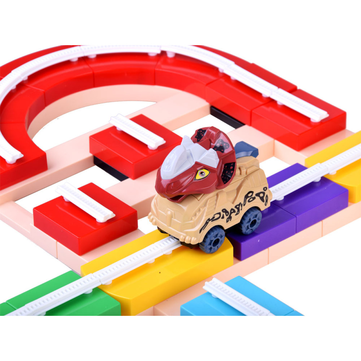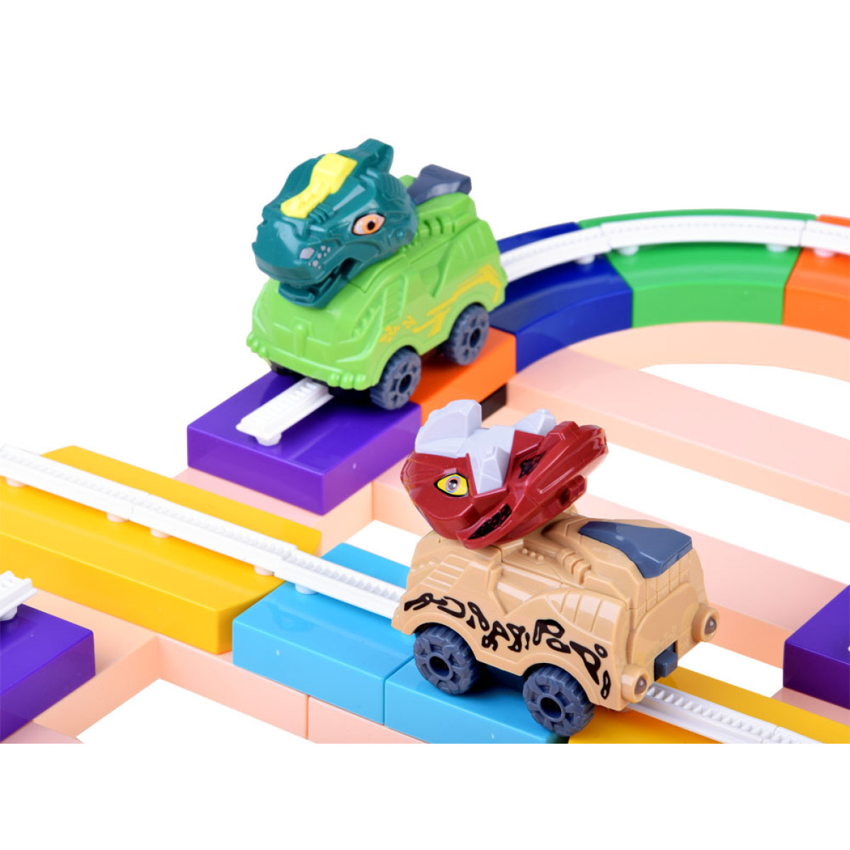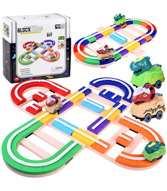 Dinosauruse autode rada tee on loominguline komplekt väikesele ehitajale. Komplekt koosneb 143 rajast ja 2 dinosauruse peaga autost. See pakub suurepärast meelelahutust. Mänguasja saab paigutada tasasele pinnale mis tahes konfiguratsioonis, et tagada pidev sõit, kuid seda saab kinnitada ka vertikaalsele siledale tasasele seinale iminappade abil.