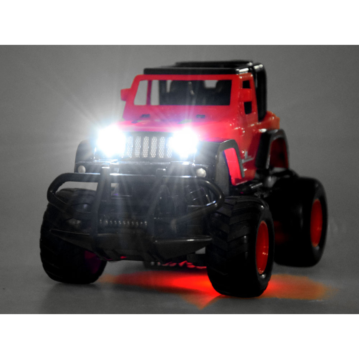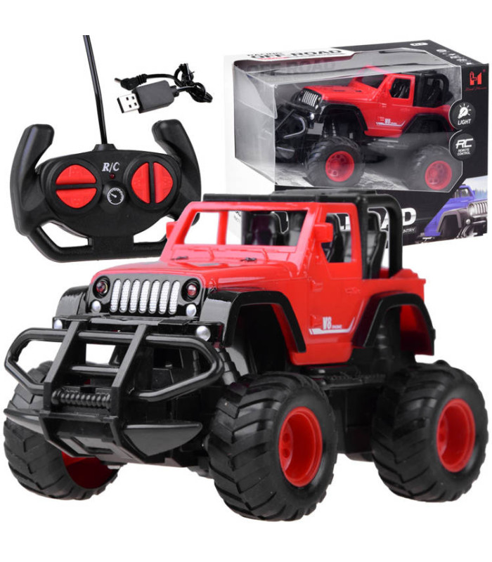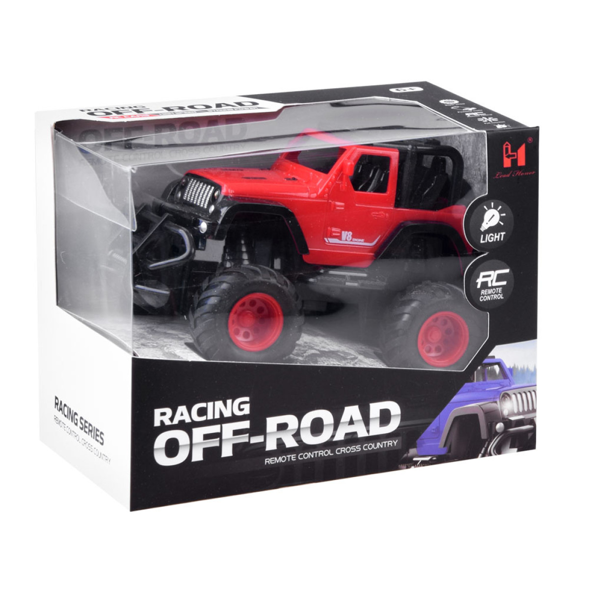 Sportlik rool kujuline kaugjuhtimispult pakub lastele palju positiivset lõbu. Auto on valmistatud punase ja musta värviga plastikust, millel on laia mustriga kummirehvid, tagades suurepärase haarduvuse. Stiilne maastikusiluett paistab silma erinevatel radadel, mida väike juht ette valmistab, ja sõidu ajal süttivad tuled valgustavad teed.