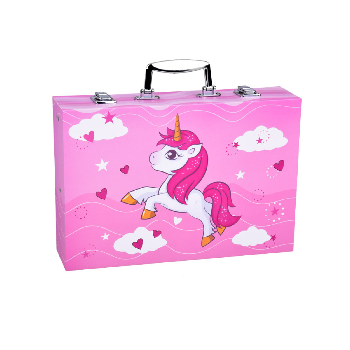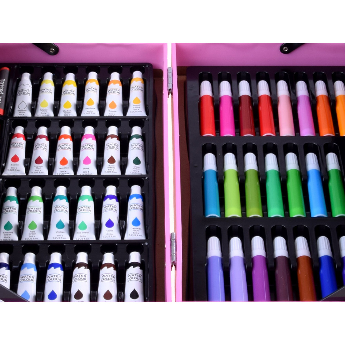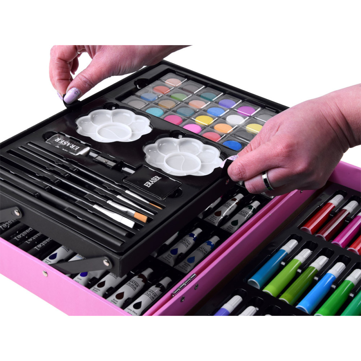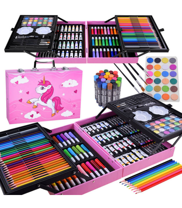 Kunstikomplekt maalimiseks kohvris lastele, mis kindlasti meeldib igale väikesele kunstnikule. Joonistamine ja maalimine mõjutavad positiivselt lapse peenmotoorika arengut. Need tegevused stimuleerivad loovust, treenivad aju ja valmistavad last ette kirjutamise õppimiseks. Mitmevärviline pliiatsite, värvide ja markerite komplekt pakub pikka loovat ajaveetmist. Tänu sellele komplektile saab iga väike kunstnik luua imelisi kunstiteoseid, õnnitluskaarte, portreesid ja joonistusi emale, isale, vanavanematele.