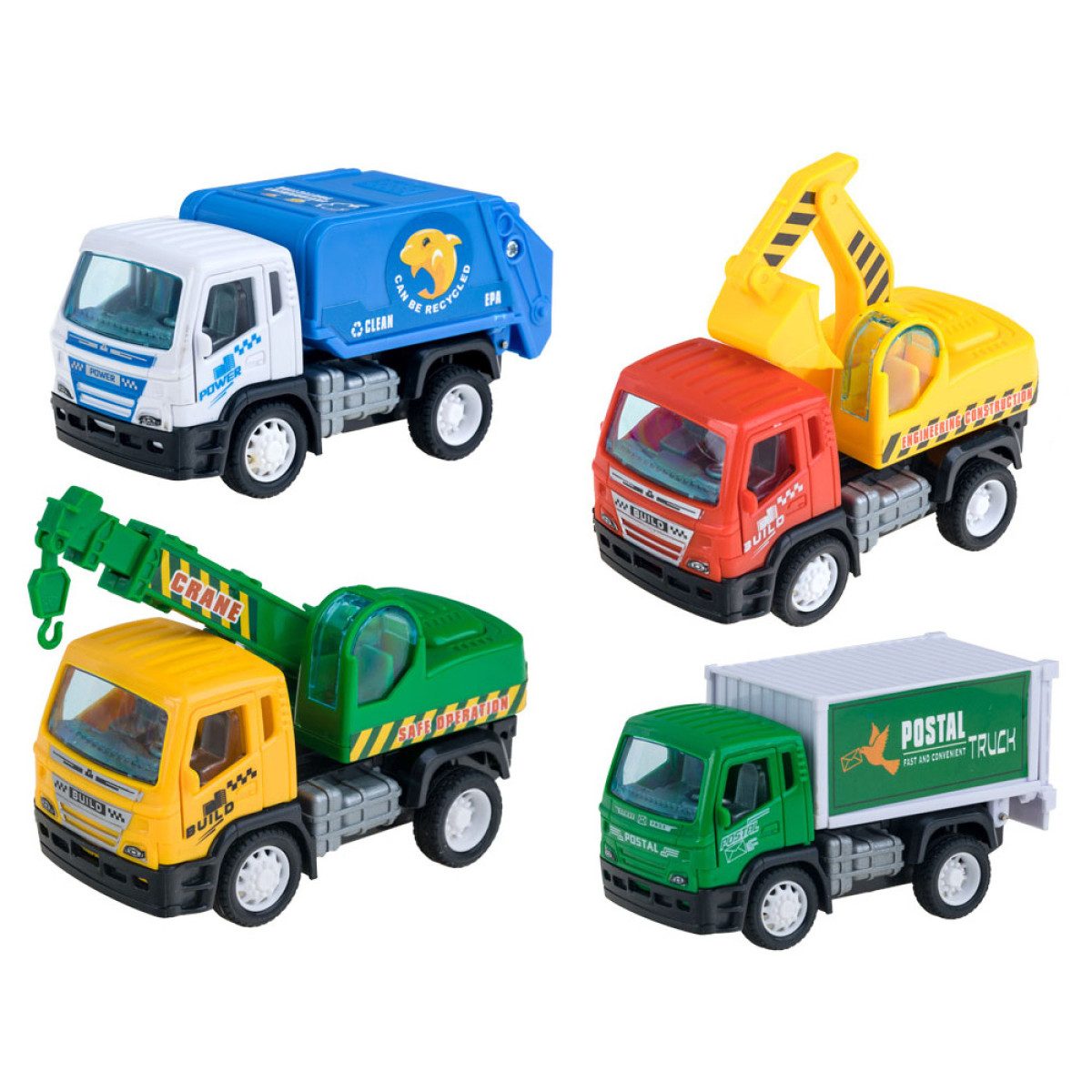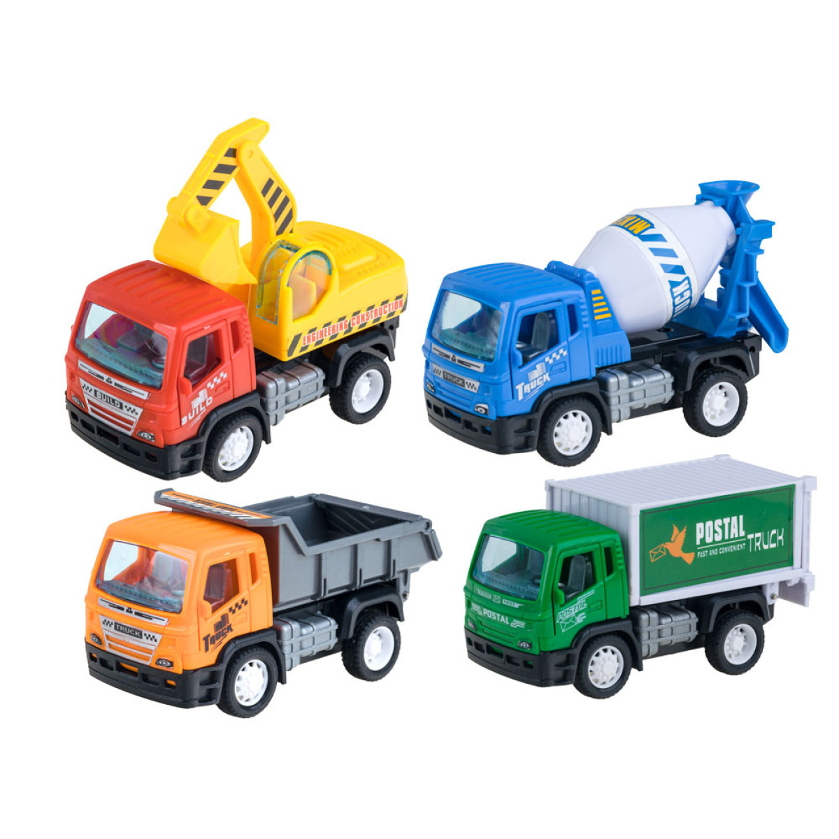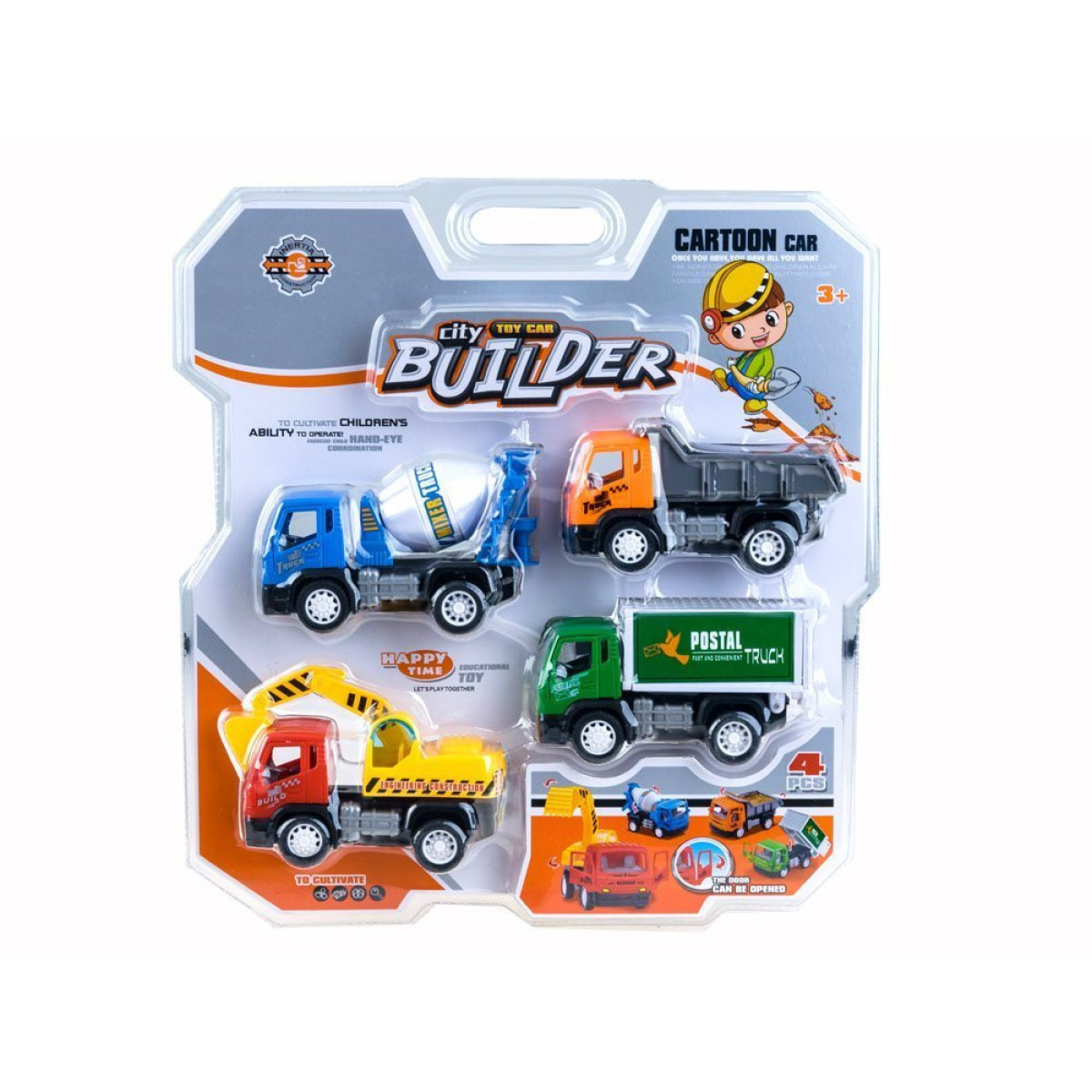 Plastikust ehitusautode komplekt avanevate ustega, sobib iga ehitusplatsi jaoks. Komplekt on valmistatud väga kindlalt ja efektselt, erksates ja ilusates värvides, ohutu väikestele lastele. Selline sõidukite komplekt rahuldab iga väikest ehitussõidukite armastajat. Tänu väikestele mõõtmetele on sõidukid suurepärased väikeste laste kätele. Nad on väga käepärased, mahuvad igale poole ja neid saab kaasa võtta jalutuskäigule või lasteaeda. Komplekt sisaldab nelja hoolikalt valmistatud sõidukit, mis rahuldavad iga väikest inseneri. Mänguasi liikuvate osadega (kallur, avanevad uksed), auto on varustatud Friction power mehhanismiga, mis tähendab, et see kiireneb mänguasja liigutamisel siledal pinnal.