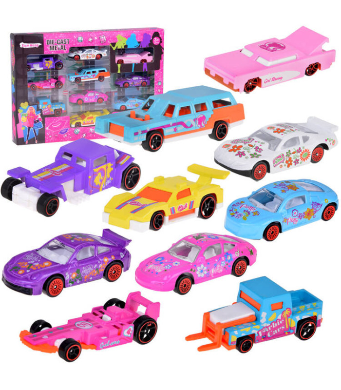 Tüdrukutele mõeldud metallist autode komplekt 10tk