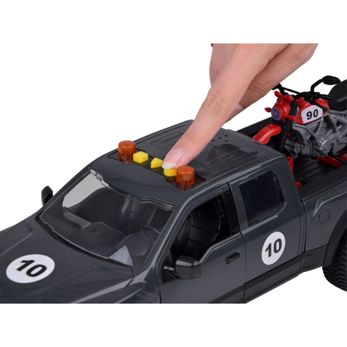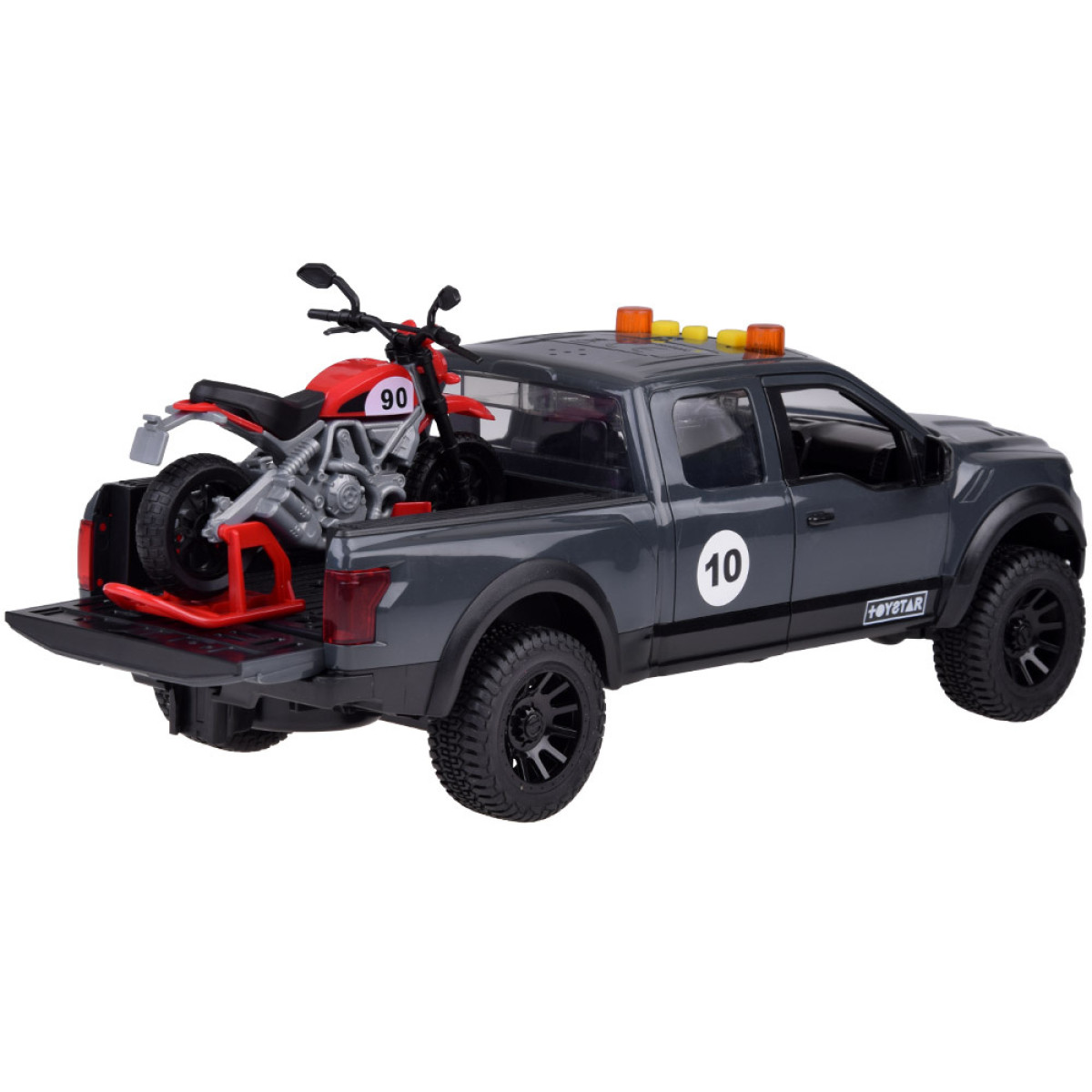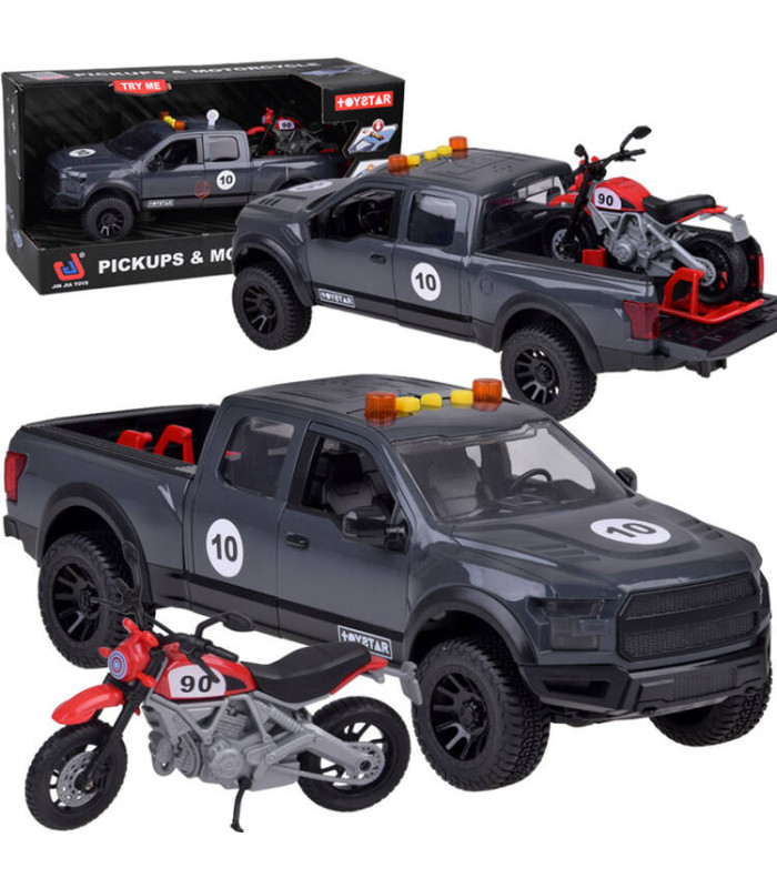 Vastupidav pikap koos mootorrattaga eemaldataval platvormil on tõeline maiuspala väikestele autohuvilistele!