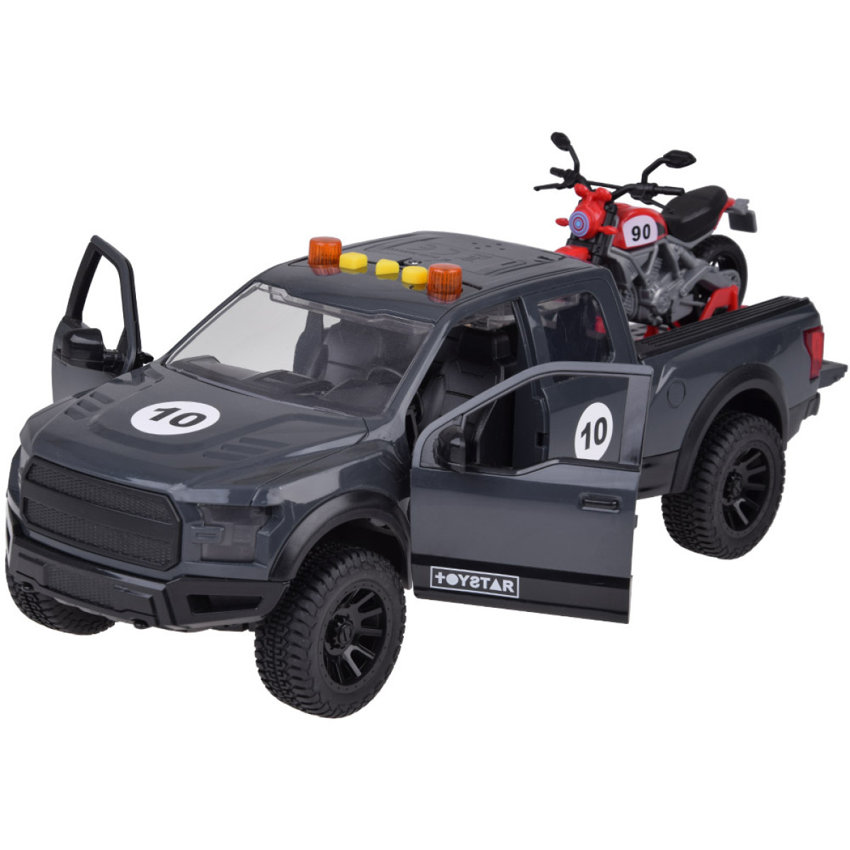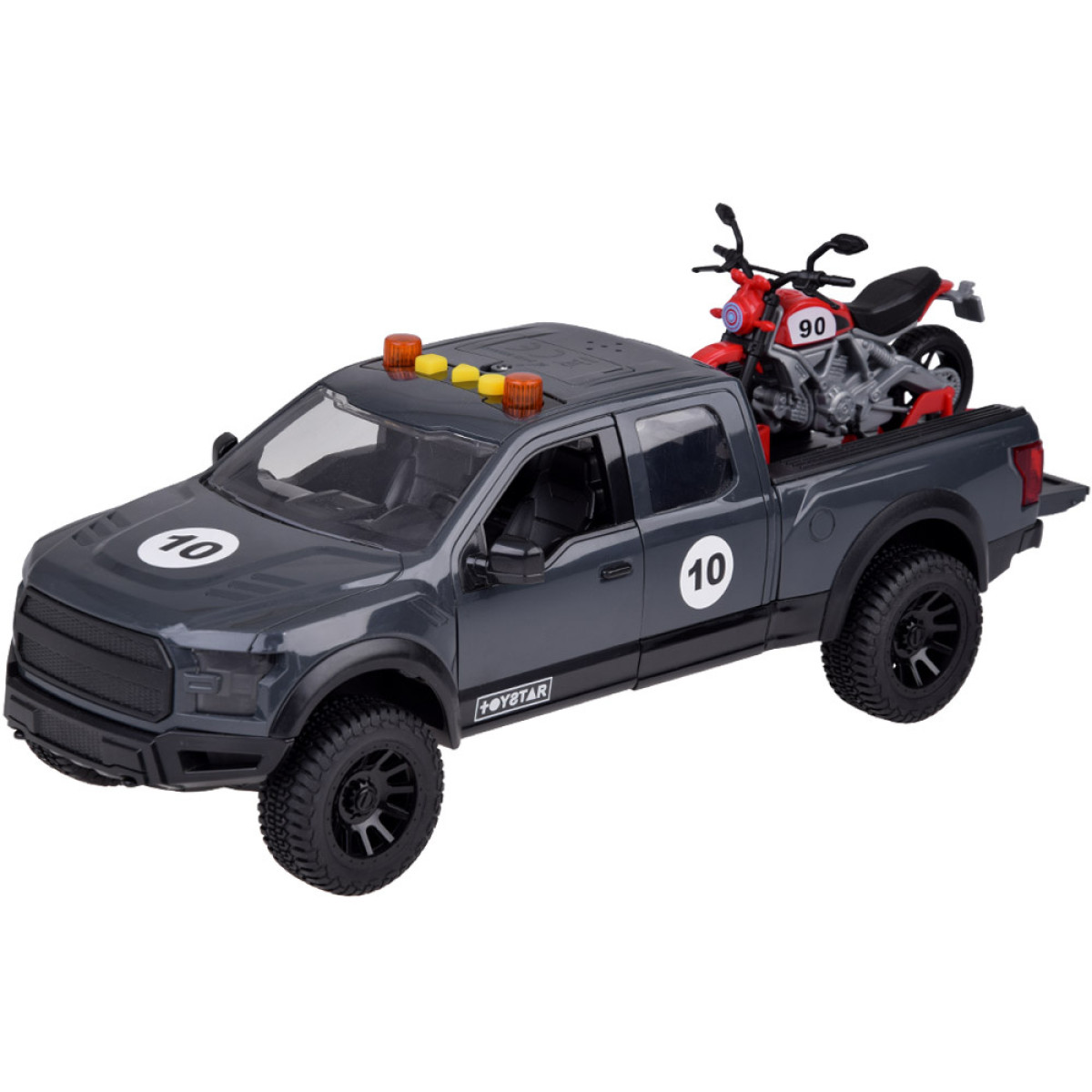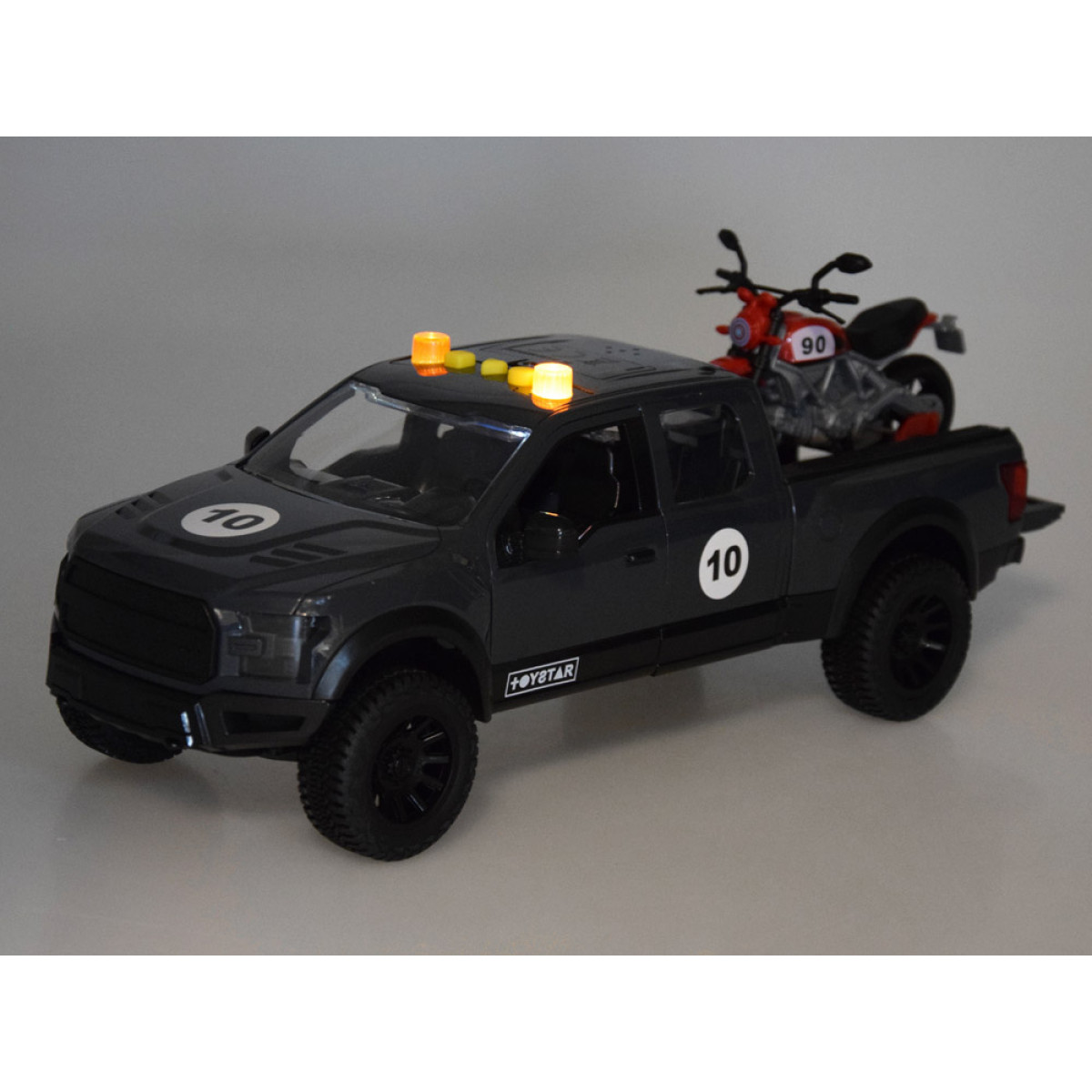 Vastupidav pikap koos mootorrattaga eemaldataval platvormil on tõeline maiuspala väikestele autohuvilistele!