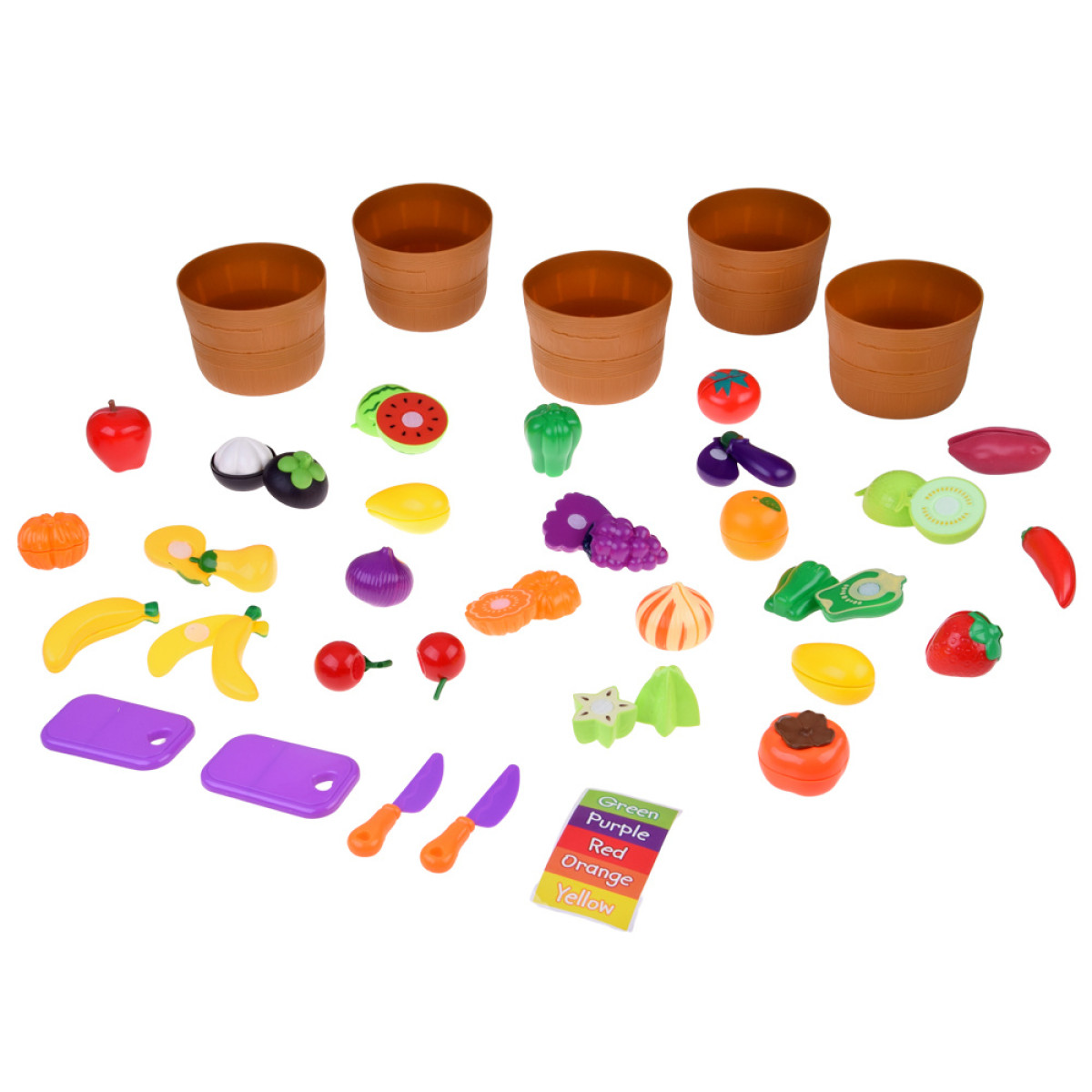 Suur köögiviljade ja puuviljade lõikekomplekt koos värvide õppimise võimalusega