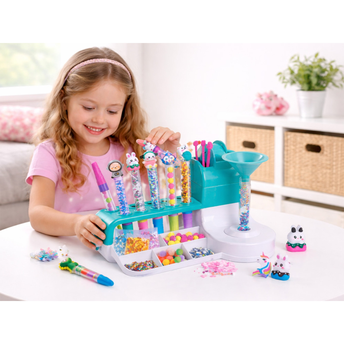 Tänu rikkalikule komplektile, milles on üle 50 tarviku, saab laps iseseisvalt valida värve, mustreid ja kaunistusi ning luua oma stiiliga sobivaid pastapliiatseid. Valmistamise protsess on lihtne ja huvitav, mistõttu püsib tegevus kaua põnev.