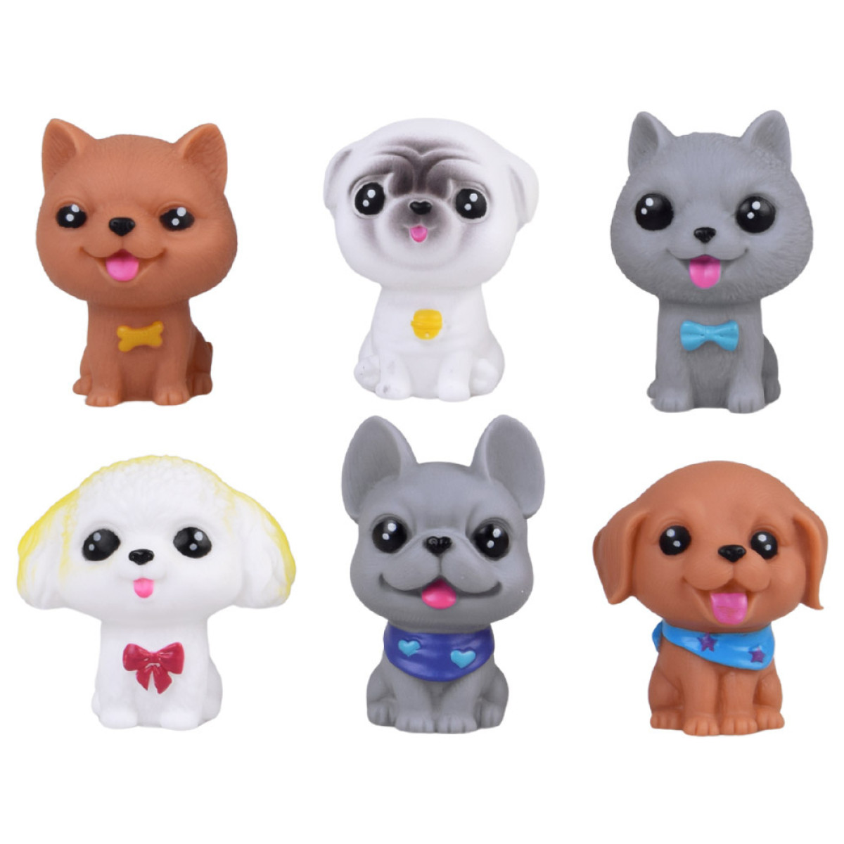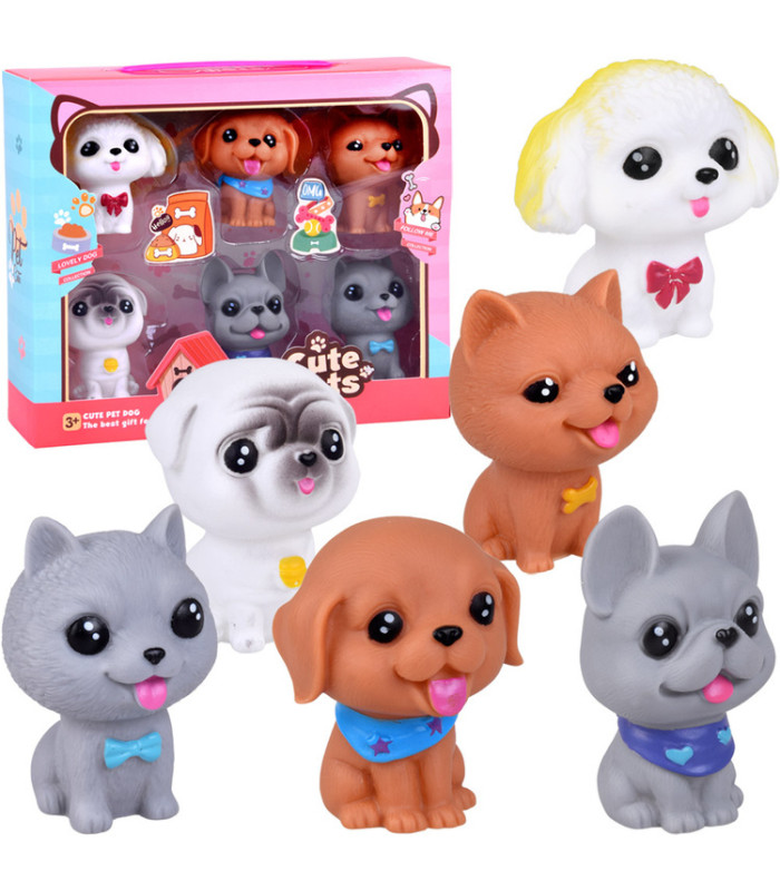 Pehmed kummist koerakujukesed on valmistatud hoolikalt ja detailidele tähelepanu pöörates. Armsad näod ja suured silmad võluvad esimesest pilgust. Vajutamisel teevad kujukesed lõbusa piiksuva heli. Iga koerakese allosas on väike ava.