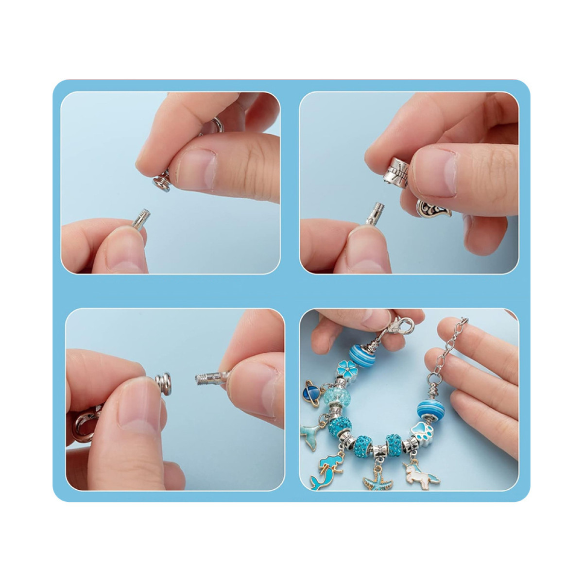 Helmekomplekt karbis ise valmistamiseks oma unikaalse käevõru loomiseks pakub igale tüdrukule palju positiivset tegevust. Tüdrukud, kes armastavad käsitööd, leiavad sellisest komplektist rohkelt inspiratsiooni oma ehete loomiseks. Iga ise valmistatud ehe on unikaalne. Komplekt on täielikult valmistatud hõbedases värvitoonis, millel on sinised ja kuldsed aktsendid.