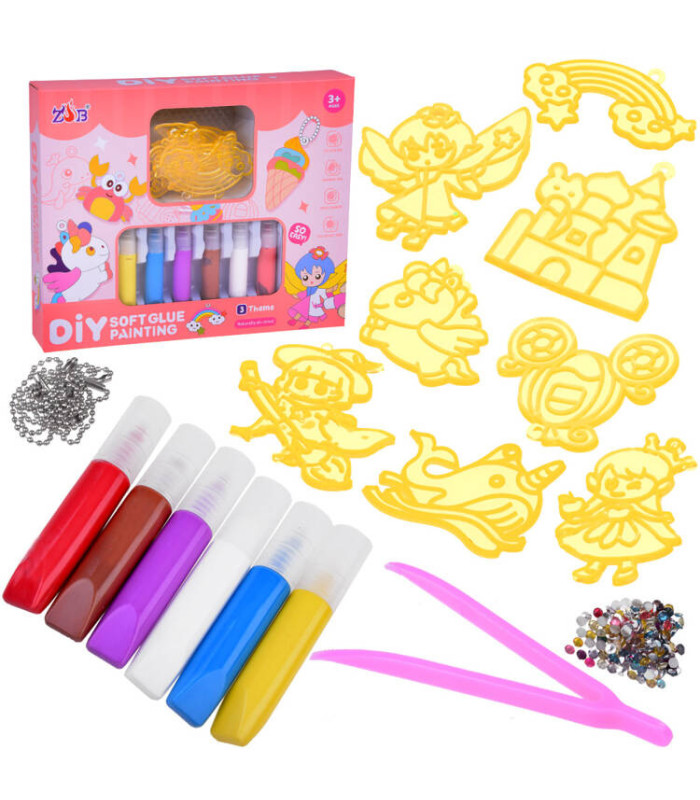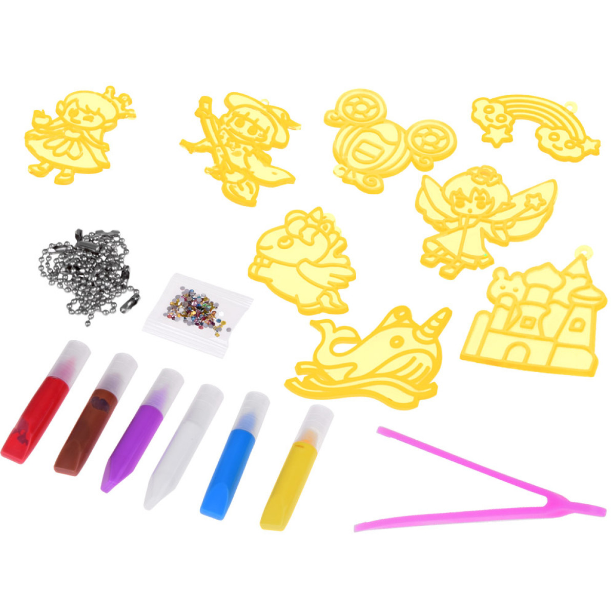 Komplektis on ka pintsetid, mis lihtsustavad kristallide paigaldamist, lisades igale projektile sära ja maagia. Kristalle saab kleepida erinevatesse kohtadesse, muutes iga teose ainulaadseks ja eriliseks. Lõpuks saab laps kaunistatud mustrid kinnitada kaasasolevatele ahelatele - see on suurepärane viis luua ilusaid ripatseid, mida saab riputada tuppa, seljakotile või kasutada võtmehoidjana.