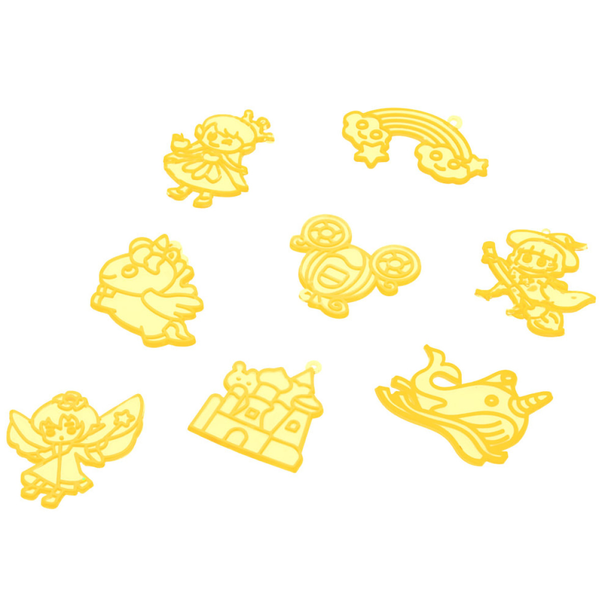 - 8 kummimalli: haldjas, nõid, printsess, vikerkaar, ükssarvik, loss, narval, tõld