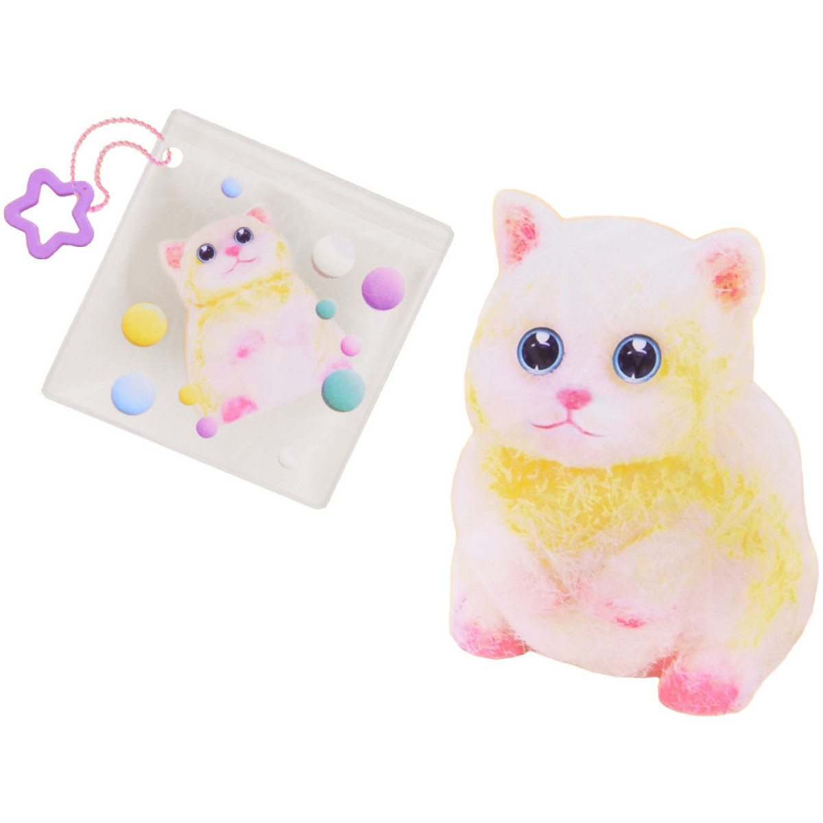 Pärast kreatiivse mängu lõppu saad pehme looma, mis on tänu oma konsistentsile pehme ja kohev. Kõik see tänu kohevale materjalile ja pehmetele pallidele, millega kassi ja kotti kaunistatakse. Kott toimib võtmehoidjana, kuna sellel on kett. Tänu sellele saab meie kassisõber alati olla kaasas.