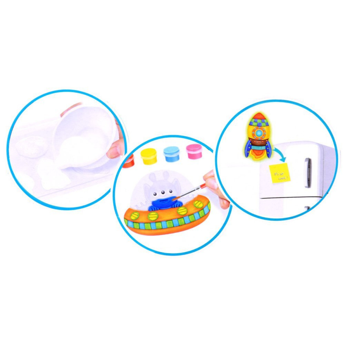 Täiuslik komplekt loominguliseks mänguks, et luua kosmilisi külmikumagneteid. Laps peab iseseisvalt valmistama vormi ja seejärel seda oma äranägemise järgi värvima.